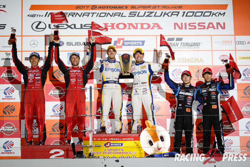 SUPER GT Rnd6 鈴鹿 フォトギャラリー 2017年8月29日2017年8月29日 RJP編集部 8月26日~27日に鈴鹿サーキットで行なわれたSUPER GT 第6戦「SUZUKA 1000km THE FINAL」。1000km最後のレースには、ジェンソン・バトンや小林可夢偉も参戦。2日間で72,500人の観客が詰めかけた。熱戦の模様をフォトギャラリーで紹介する。 (撮影:鉄谷康博・中村佳史・北川正明・吉川絹恵) 鈴鹿サーキット PHOTO GALLERY, SUPER GT