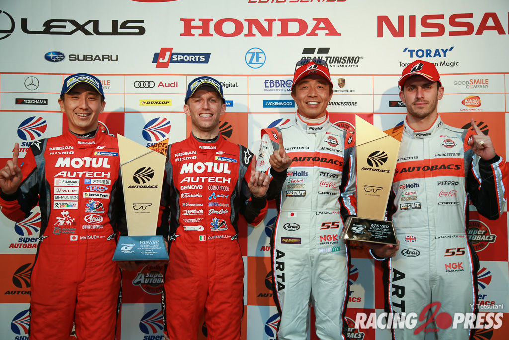 - GT500クラス優勝 #23 MOTUL AUTECH GT-R(松田 次生/ロニー・クインタレッリ) GT300クラス優勝 #55 ARTA BMW M6 GT3(高木 真一/ショーン・ウォーキンショー)