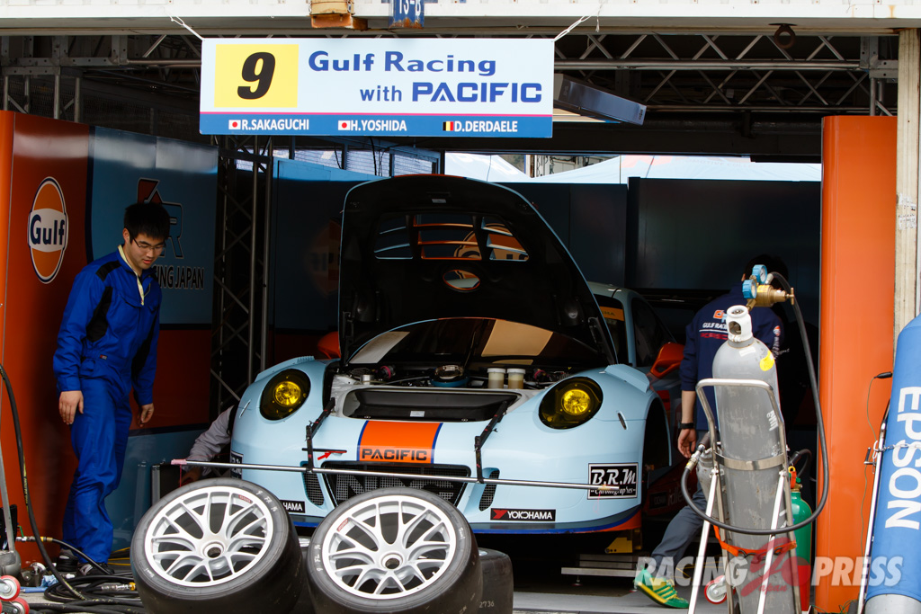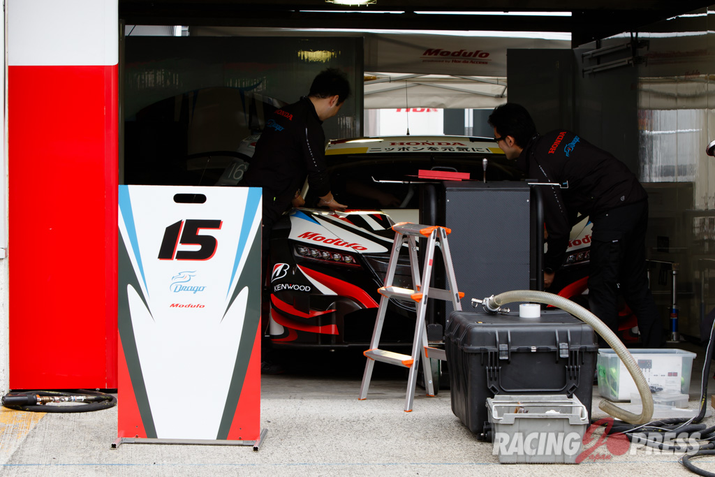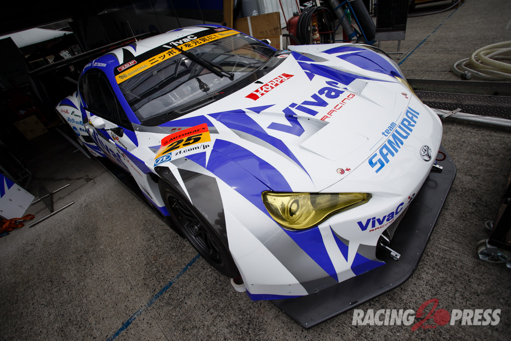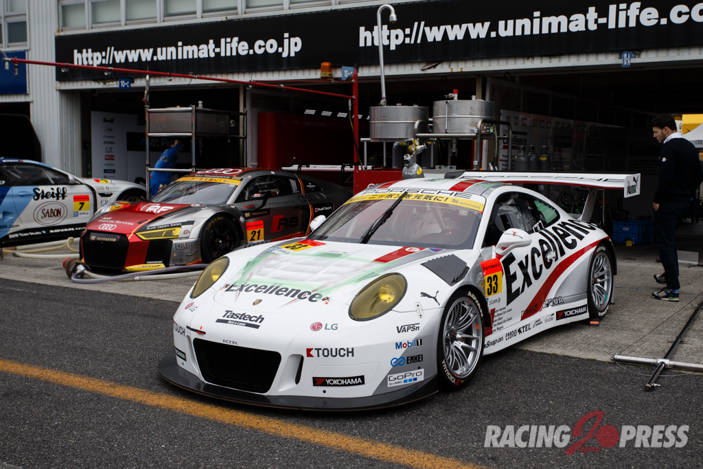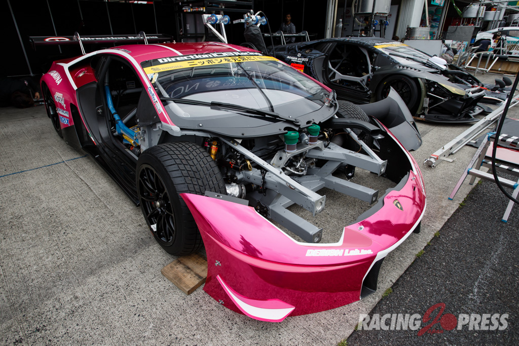 木曜日に届いたばかりというTeam TAISAN SARDの#26 AUDI R8 LMSは現場でカラーリング作業を施し、千葉代表みずからステッカーを貼るシーンも見られた。