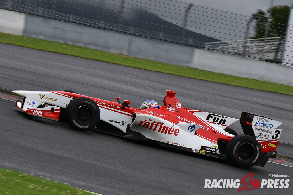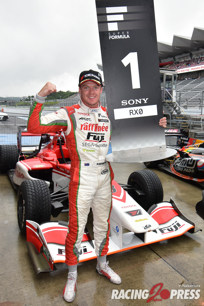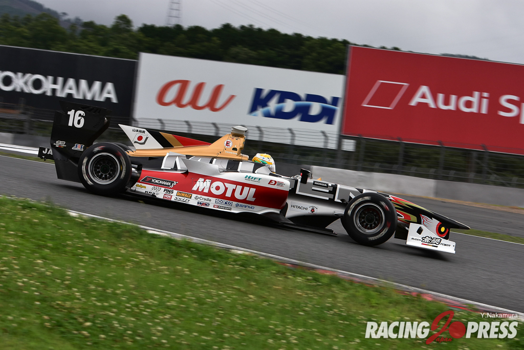 7月7日(土)、富士スピードウェイで「全日本スーパーフォーミュラ選手権 第4戦」の予選が行われ、次第に雨が強まっていくコンディションの中、現在ポイントランキング2位の#3 ニック・キャシディ [ORIENTALBIO KONDO SF14] が1’38.098でポールポジションを獲得。2番手にはポイントランキング首位の#16 山本 尚貴 [TEAM MUGEN SF14] が入り、シリーズ折り返しの第4戦がチャンピオン争いに重要な一戦となってきた。3番手には#1 石浦 宏明 [JMS P.MU/CERUMO・INGING SF14] が続いた。