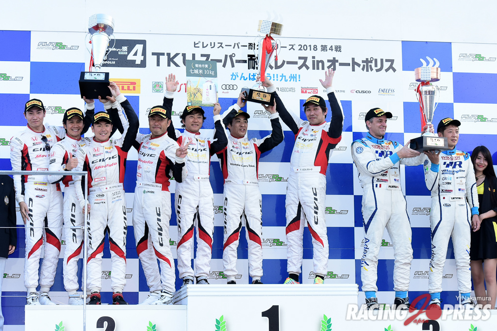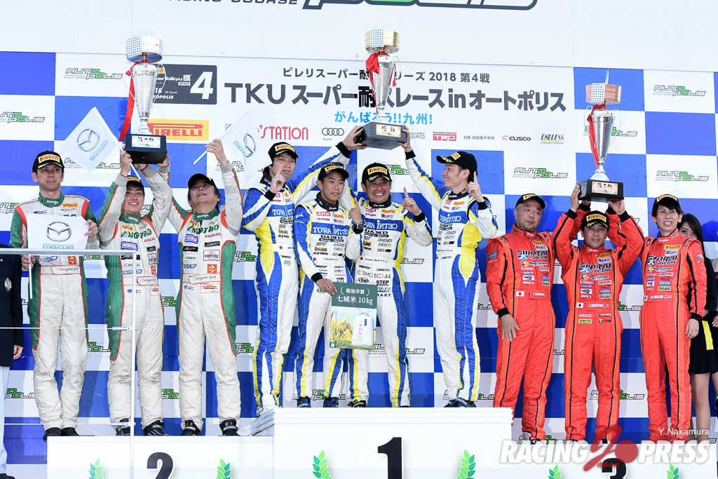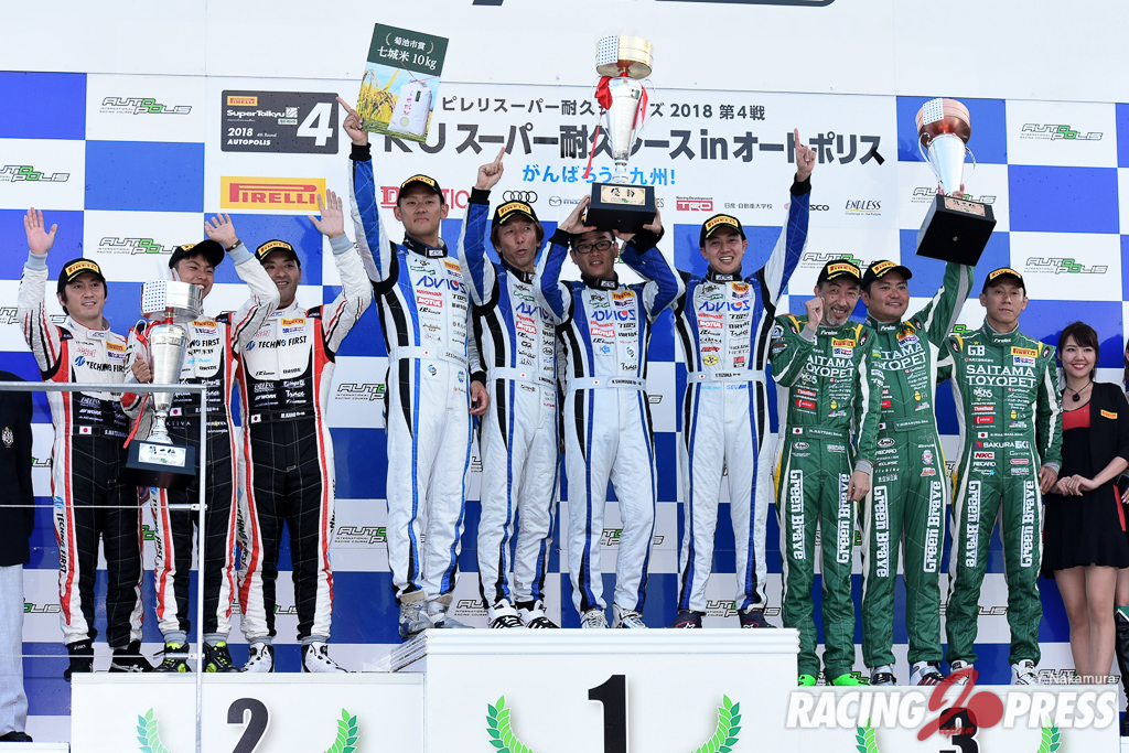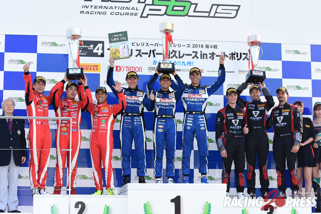 7月15日(日)、猛暑の大分県オートポリスで、ピレリ・スーパー耐久シリーズ2018 第4戦「TKU スーパー耐久レース in オートポリス」の決勝が5時間で行われ、ST-Xクラスは#24 スリーボンド ⽇産⾃動⾞⼤学校 GT-R(内⽥優⼤/藤井誠暢/平峰⼀貴)が今季初優勝を飾った。