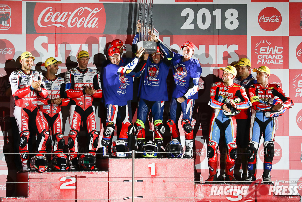 また世界耐久選手権(EWC)のタイトルは、5位でフィニッシュした#5 F.C.C. TSRホンダ・フランス(フレディ・フォレイ/ジョシュ・フック/アラン・テッチャー)が、日本チームとして初めてチャンピオンに輝いた。