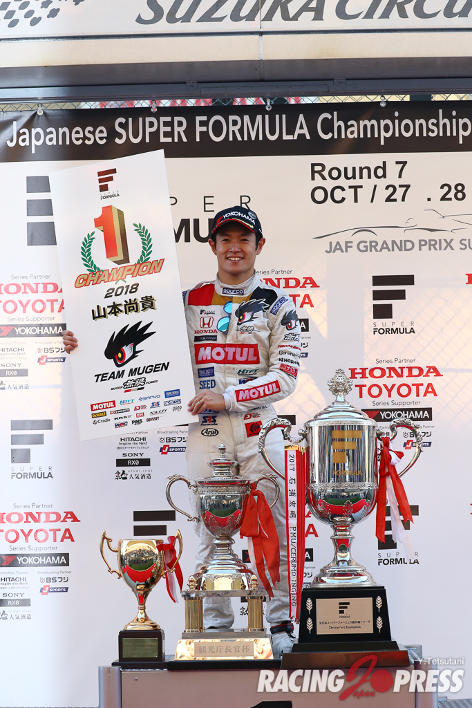 2018年の最終戦を迎えた鈴鹿サーキット。自力王者の資格を持つドライバーは3人。山本尚貴はその中でも一番不利な立場で予選に挑み、ノックアウト予選のQ1〜Q3全セッションでトップタイムをマーク、圧巻の速さを見せてライバルを牽制した。また、決勝でも文句なしのスタートでトップをキープ。終盤は後方の猛追に遭うも、巧みなコントロールでシャットアウトし、完全勝利を達成するパーフェクトな戦いで逆転チャンピオンを引き寄せた。崖っぷちから見せた底力の大きさによって、自身2度目のタイトルを手にし、また今シーズンで最後となるSF14のラストウィンを飾っている。