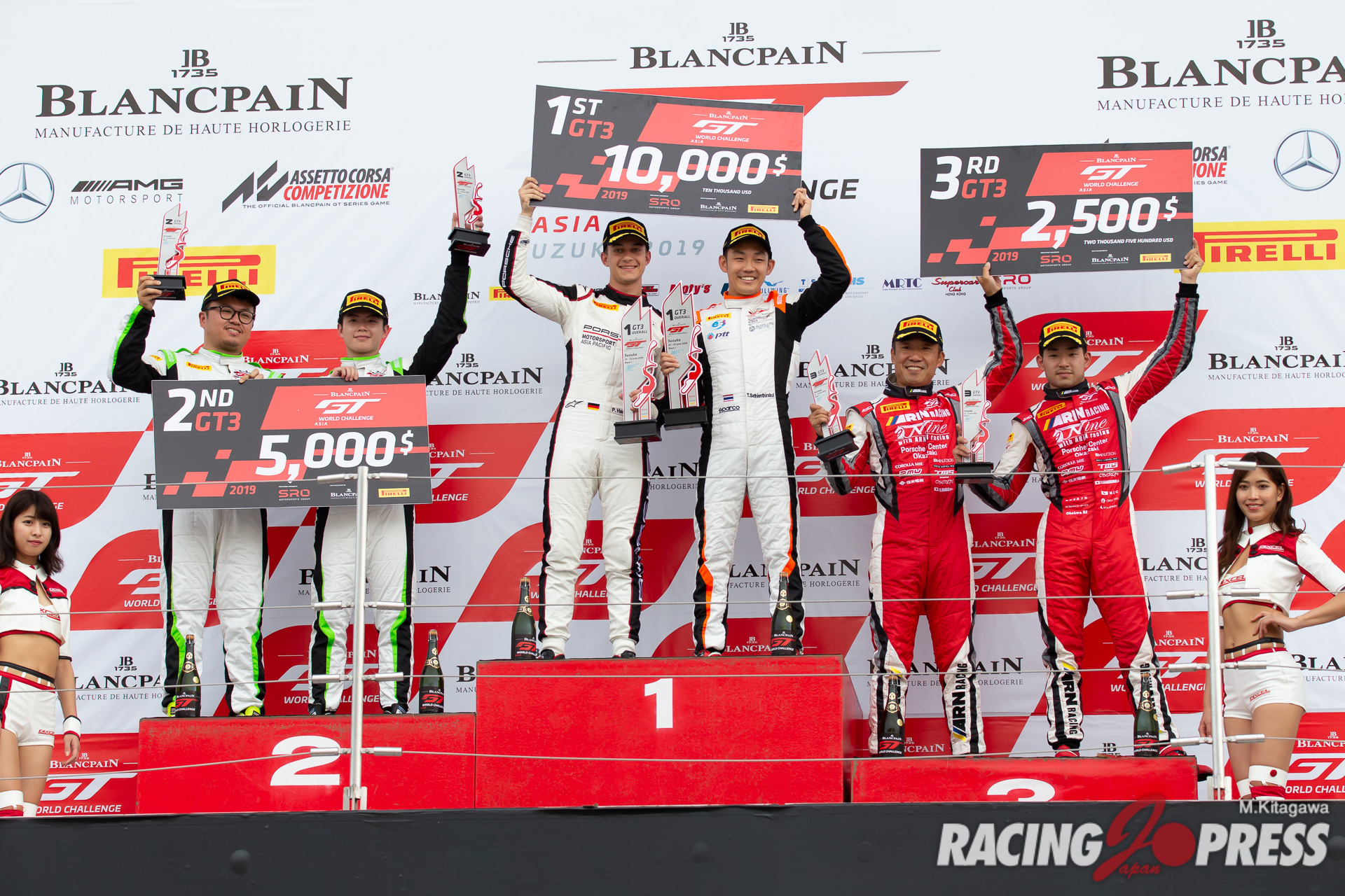 6月22日(土)、鈴鹿サーキットで「ブランパンGTワールドチャレンジ アジア Rnd.5」の決勝が60分間で行われ、#911 Absolute Racing (Tanart Sathienthirakul /Philip Hamprecht)Porsche 911 GT3 Rが総合優勝。#912 Absolute Racing (Yuan Bo/Leo Ye Hongli)Porsche 911 GT3 Rが2位に入り、Absolute Racingがワンツーフィニッシュ。日本の#8 ARN Racing (Hiroaki Nagai/Yuta Kamimura)Porsche 911 GT3 R が3位に入り、ポルシェ勢が表彰台を独占した。