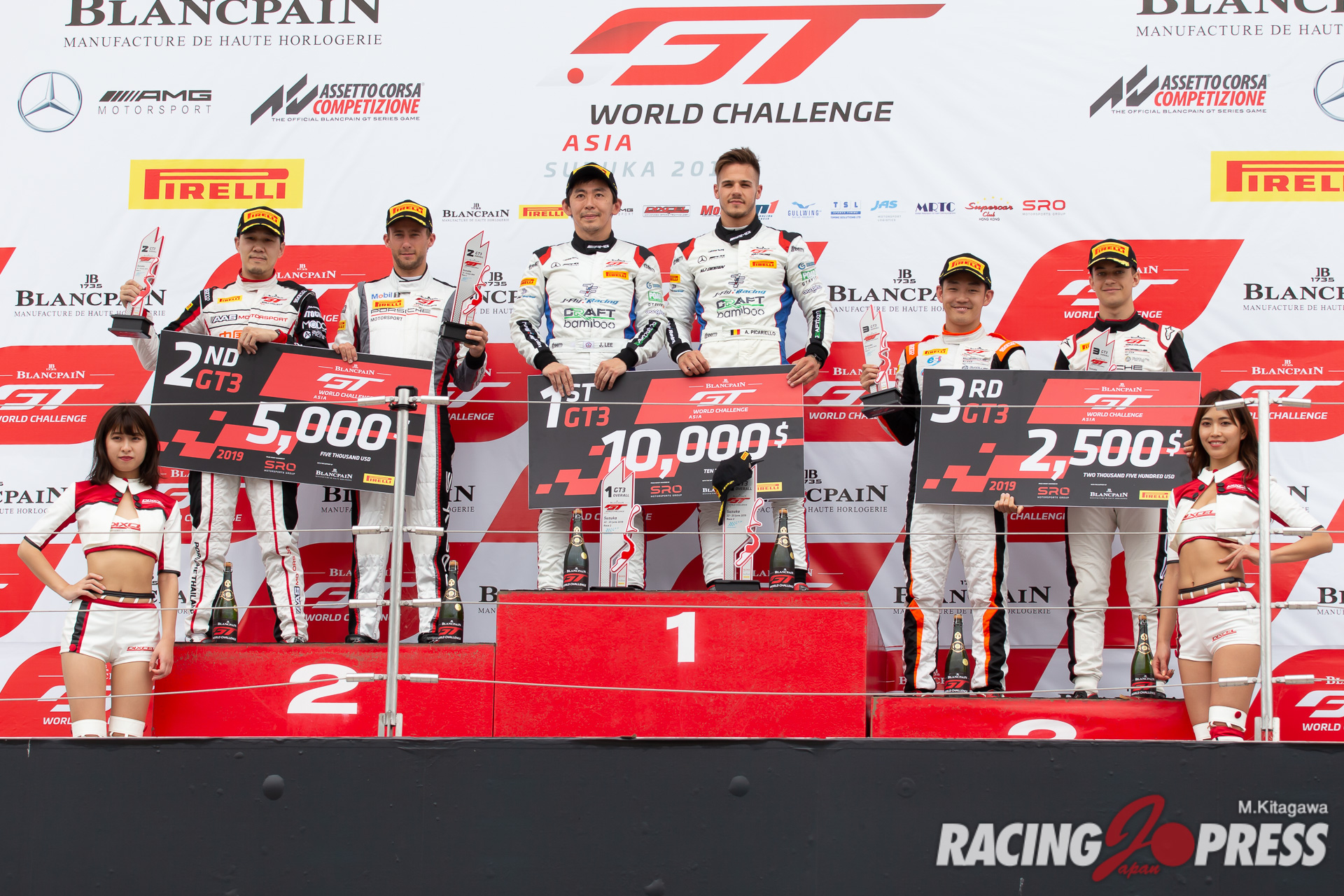 6月23日(日)、鈴鹿サーキットで「ブランパンGTワールドチャレンジ アジア Rnd.6」の決勝が60分間で行われ、総合で#88 Craft-Bamboo Racing (Jeffrey Lee/Alessio Picariello)Mercedes-AMG GT3が優勝。2位に#918 Panther/AAS Motorsport (Vutthikorn Inthraphuvasak /Marco Holzer)Porsche 911 GT3 R、3位には#911 Absolute Racing (Tanart Sathienthirakul /Philip Hamprecht)Porsche 911 GT3 Rが入った。