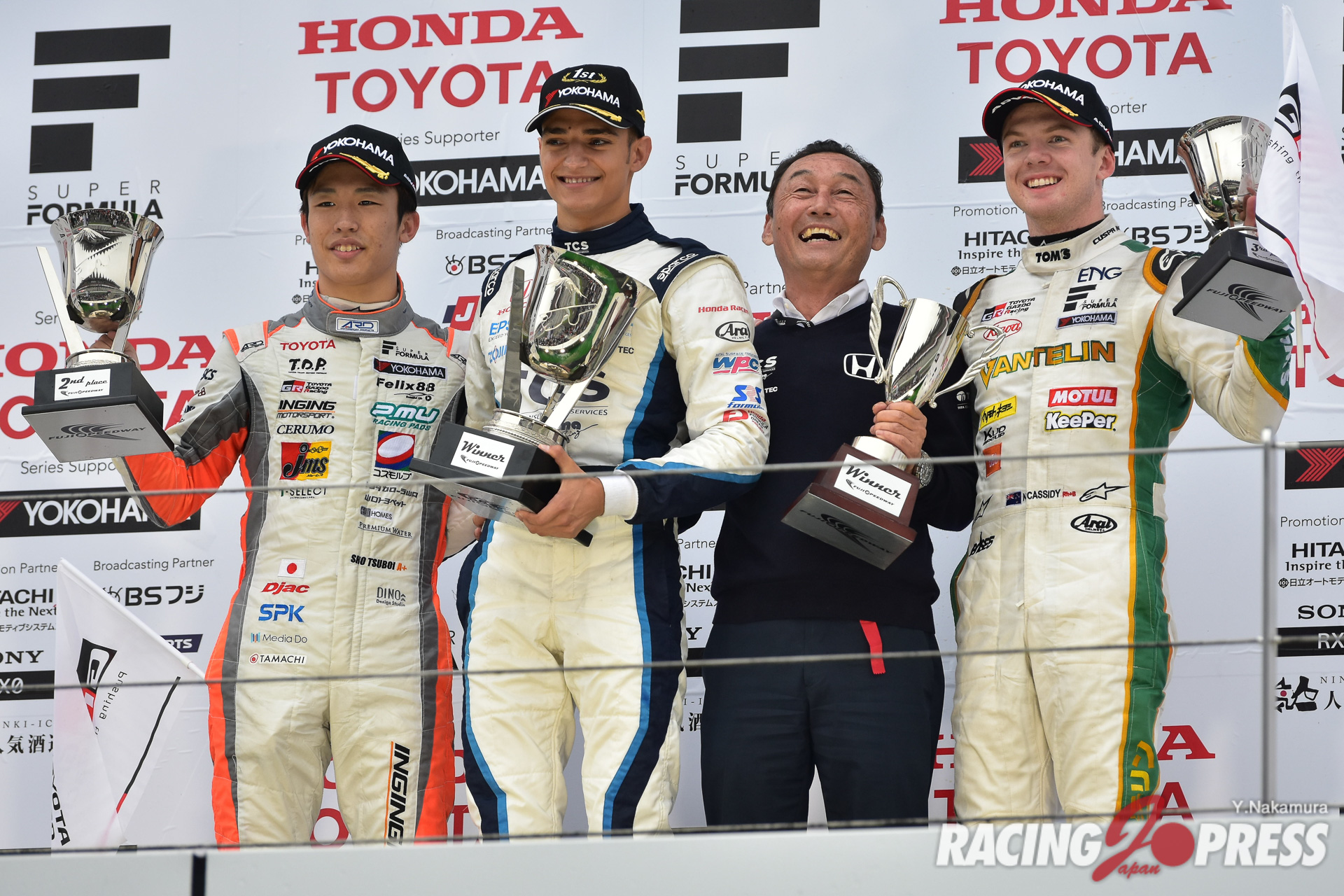 7月14日(日)、富士スピードウェイで「2019年 全日本スーパーフォーミュラ選手権 第4戦」の決勝が行われ、ポールポジションからスタートした#64 アレックス・パロウ [TCS NAKAJIMA RACING SF19]が初優勝を飾った。2位には#39 坪井 翔 [JMS P.MU/CERUMO・INGING SF19]、3位に#37 ニック・キャシディ [VANTELIN KOWA TOM’S SF19]が入った。