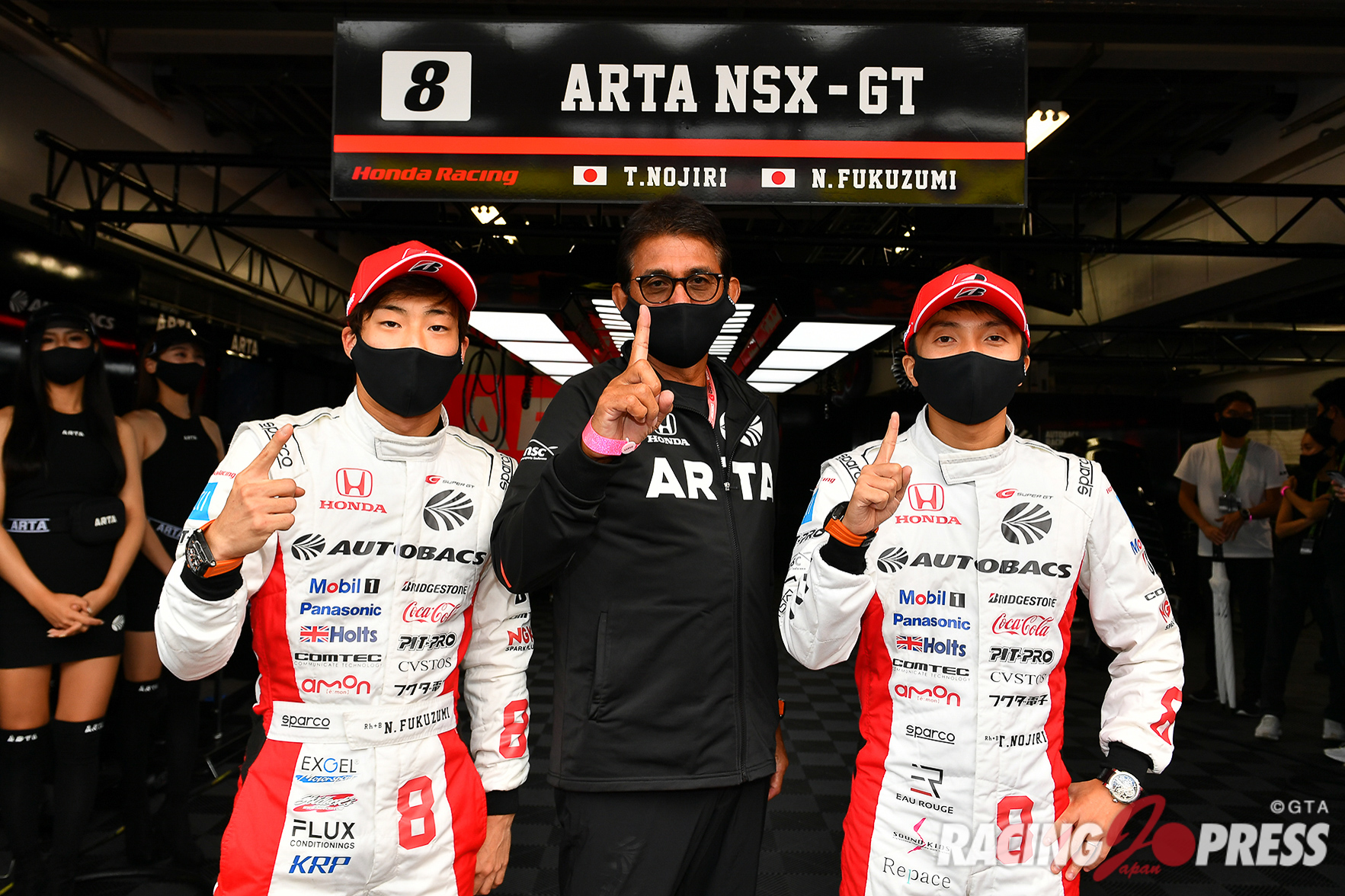 - GT500クラスポールポジション #8 ARTA NSX-GT(福住 仁嶺/鈴木 亜久里 監督/野尻 智紀)