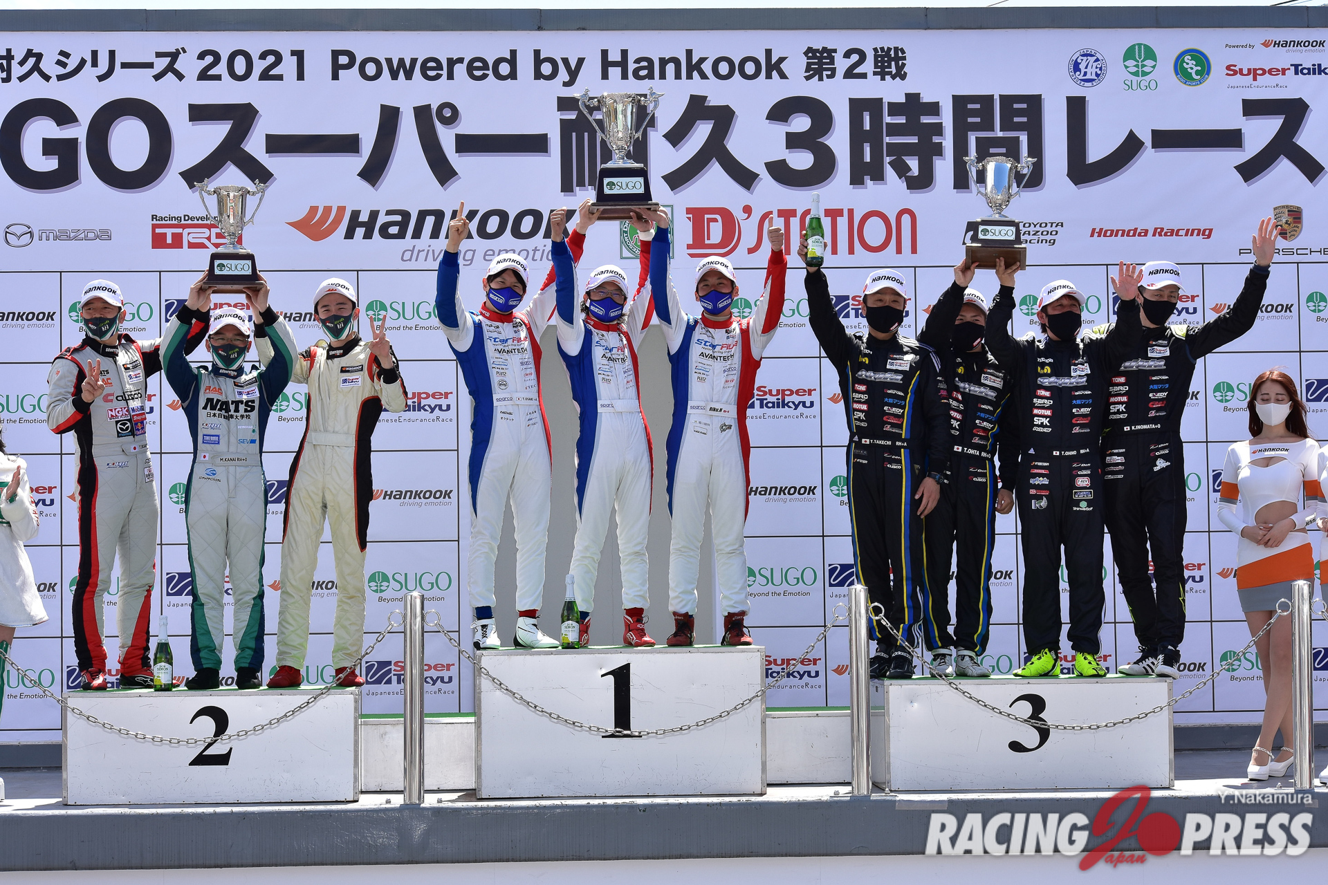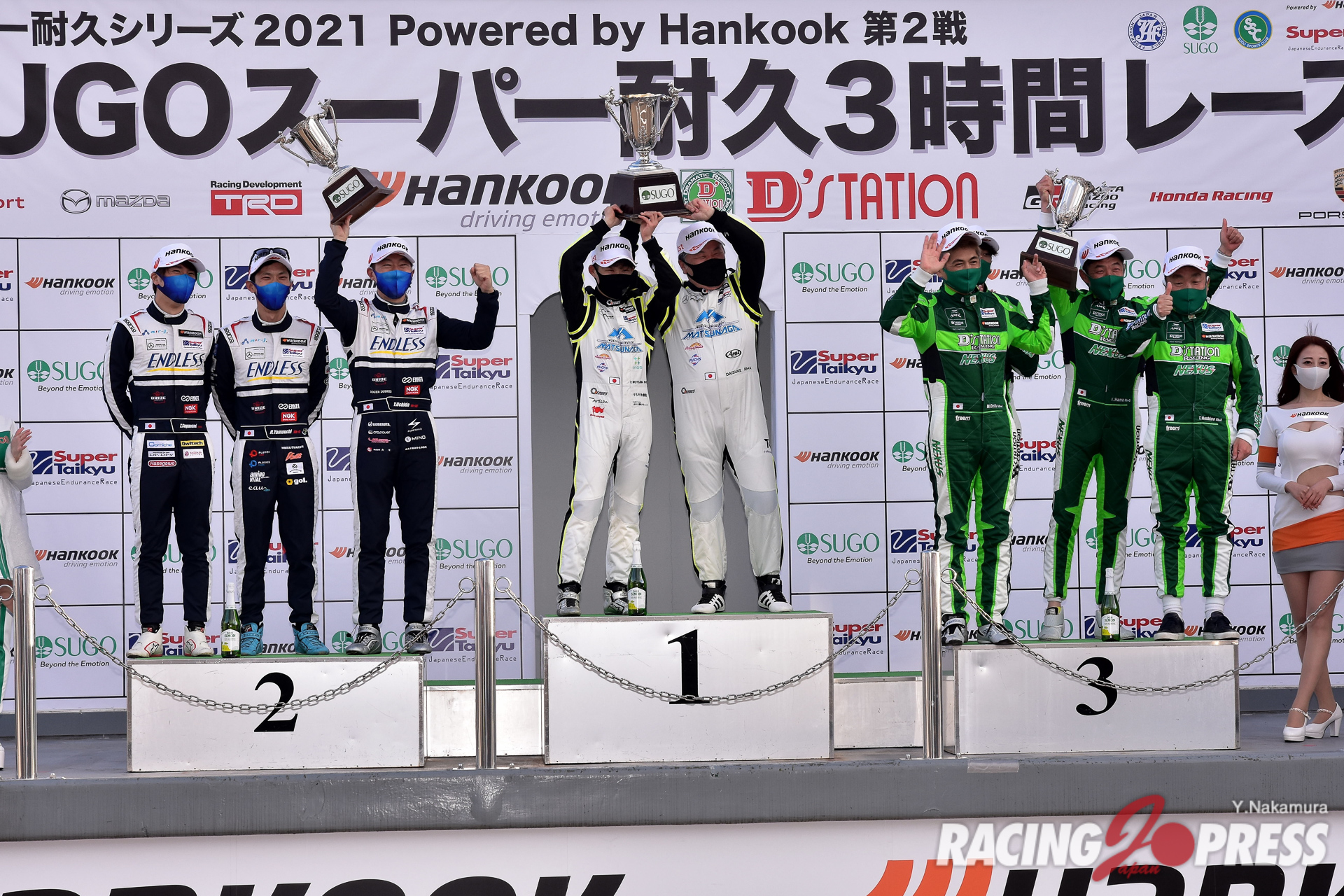 4月18日(日)、スポーツランドSUGOで「スーパー耐久シリーズ2021 Powered by Hankook 第2戦 SUGOスーパー耐久3時間レース」の決勝が行われ、ST-Xクラスは#16 PC Okazaki 911 GT3R(永井 宏明/上村 優太/中山 雄一)が優勝した。