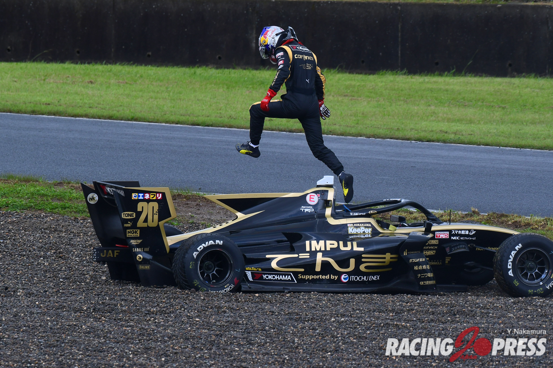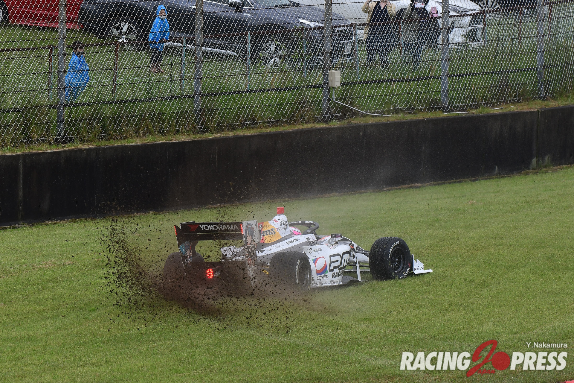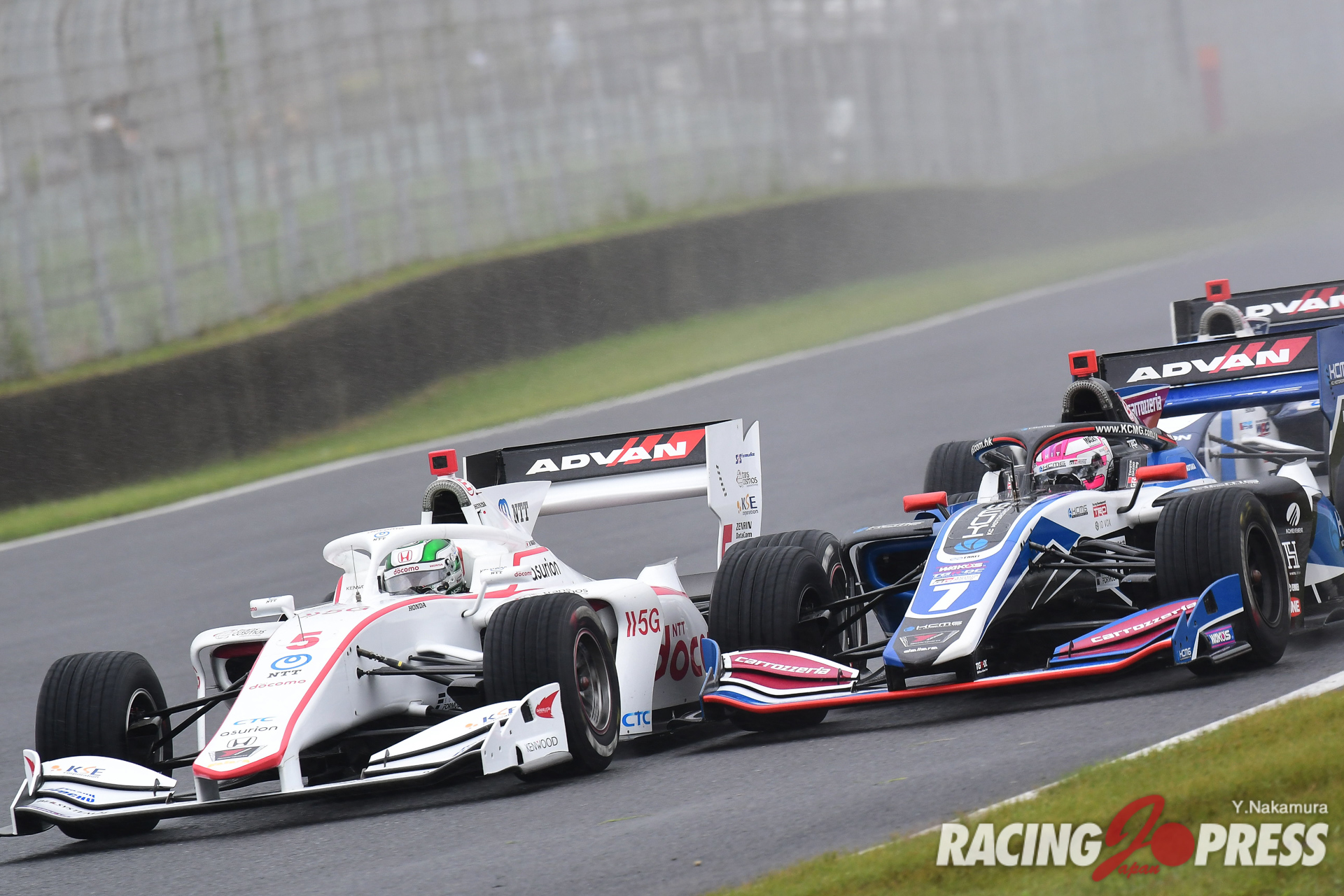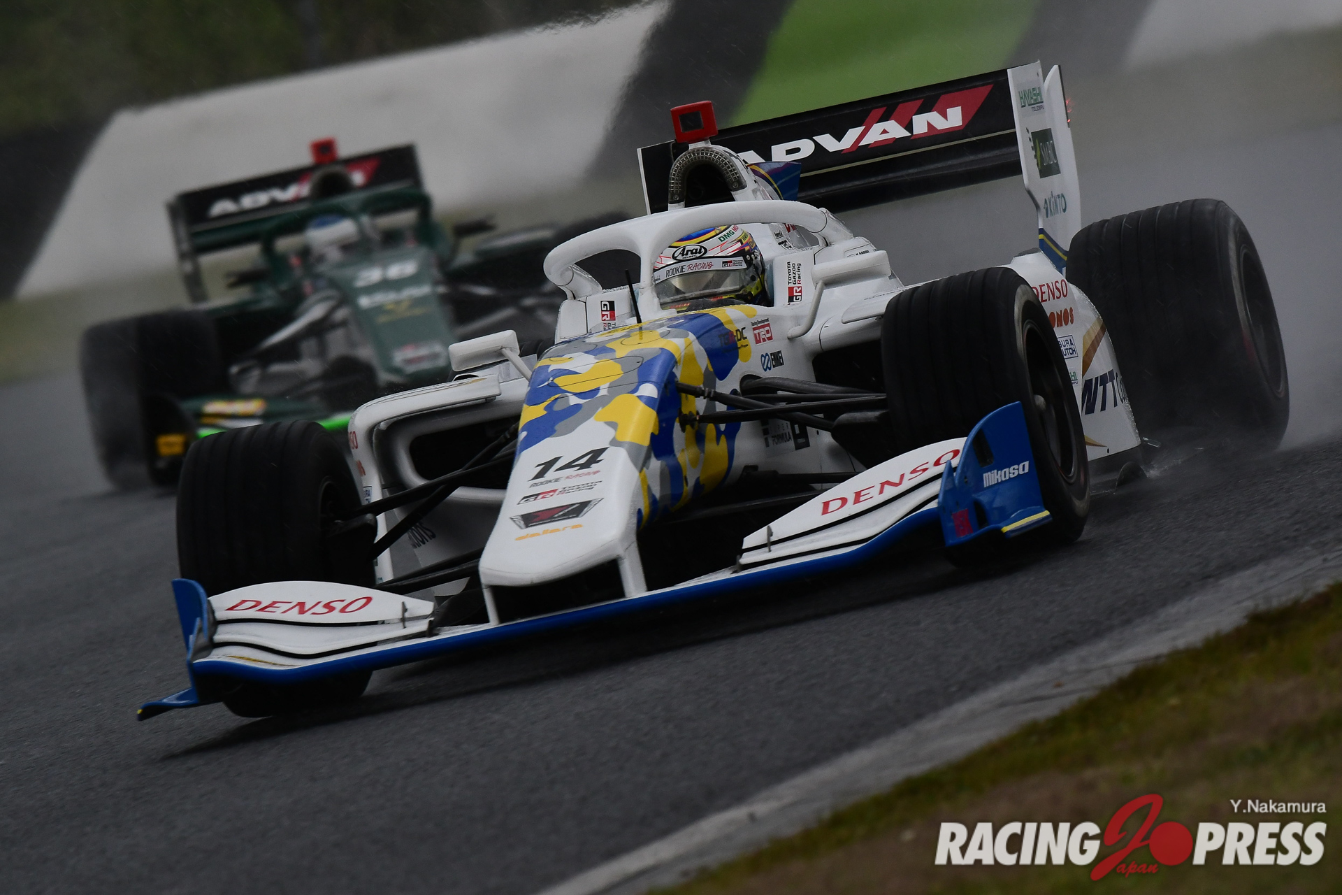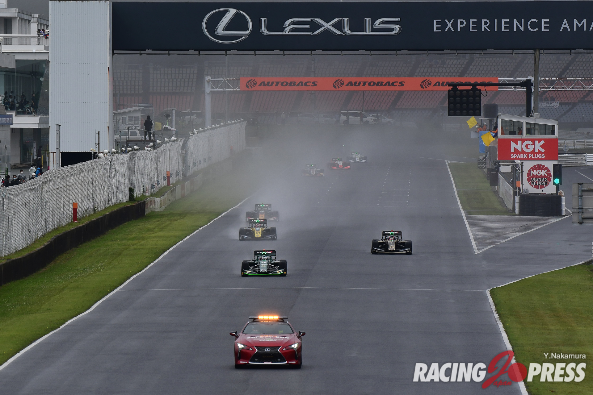 なお、セッション中はトータル4回の赤旗が出され、計測はその都度中断。その中で序盤にトップタイムをマークしていたのは#19 関口雄飛(carenex TEAM IMPUL)だった。だが、折返しを前に#37 宮田莉朋(Kuo VANTELIN TEAM TOM’S)がトップタイムを更新、#64 大湯都史樹(TCS NAKAJIMA RACING)も2番手へと浮上した。さらに、残り時間15分強の時点で#39 阪口晴南(P.MU/CERUMO・INGING)が宮田と大湯の間に割って入り、2番手に浮上。するとそこへアタック中だったアレジが1分38秒252をマークし、トップへと躍り出る。これを追わんと大湯もセクタータイムでトータルベストをマーク。だが100R進入でスピンを喫し、万事休す。スポンジバリアにクルマをぶつけ左フロント周りを激しく傷めた大湯は、自力でピットへと戻ることはできたが、この直後に4度目の赤旗が提示され、セッションが中断した。チェッカーまで15分ほどの時間は残っていたが、強まる雨と霧でコンディションは悪化をたどる一方。その中でも本降りの雨でのクルマの確認を行おうとコースに向かうクルマもいたが、アタックに挑むコンディションとは言い難く、タイム更新も果たすことなくこのままセッションが終了した。結果、アレジが自身初となるポールポジションを獲得。2位にはチームメイトの宮田が0.085秒差で続き、3番手には阪口。序盤でトップに立った関口が4番手につけ、上位6台すべてがトヨタエンジンユーザーという結果に終わった。