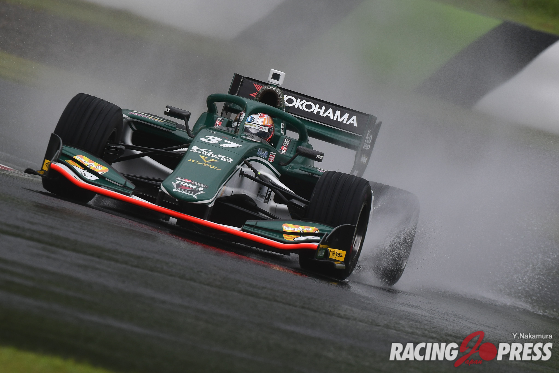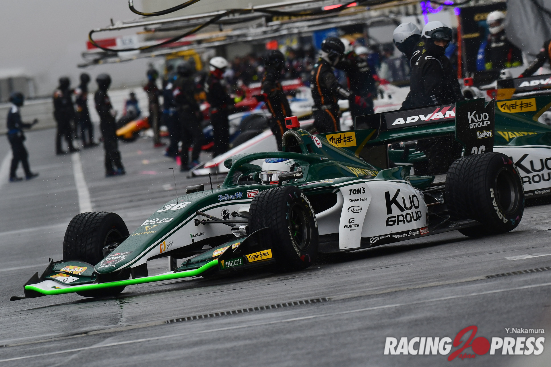 5月15、16日に大分・オートポリスで開催された全日本スーパーフォーミュラ第3戦。あいにくの雨模様の中、予選、決勝が各日行われ、ポールポジションからスタートを切った#36 ジュリアーノ・アレジ(Kuo VANTELIN TEAM TOM’S)がポールポジションからスタート。レースは途中、天候悪化による赤旗終了となり、終始トップを守ったアレジが自身初優勝を手にしている。