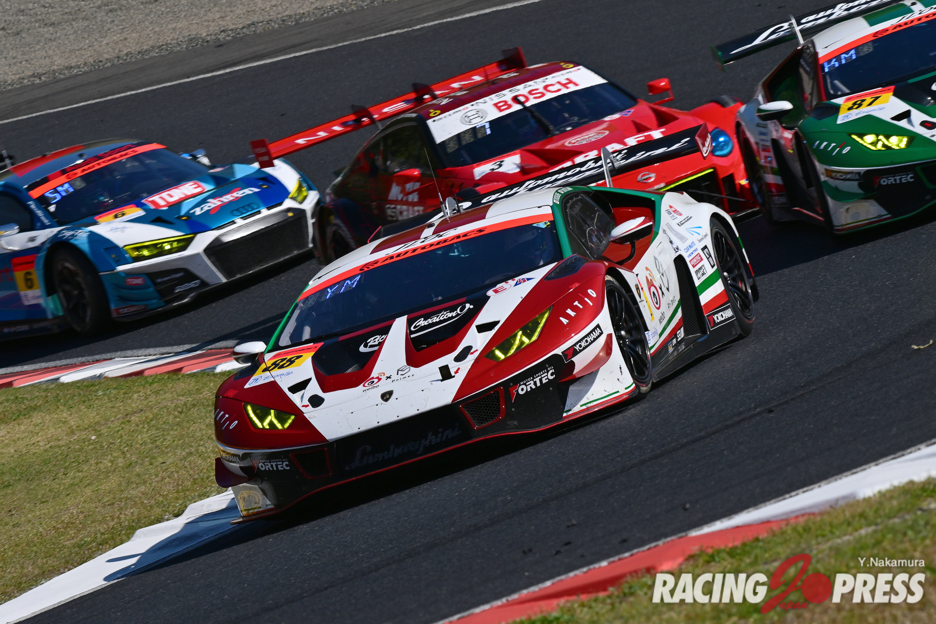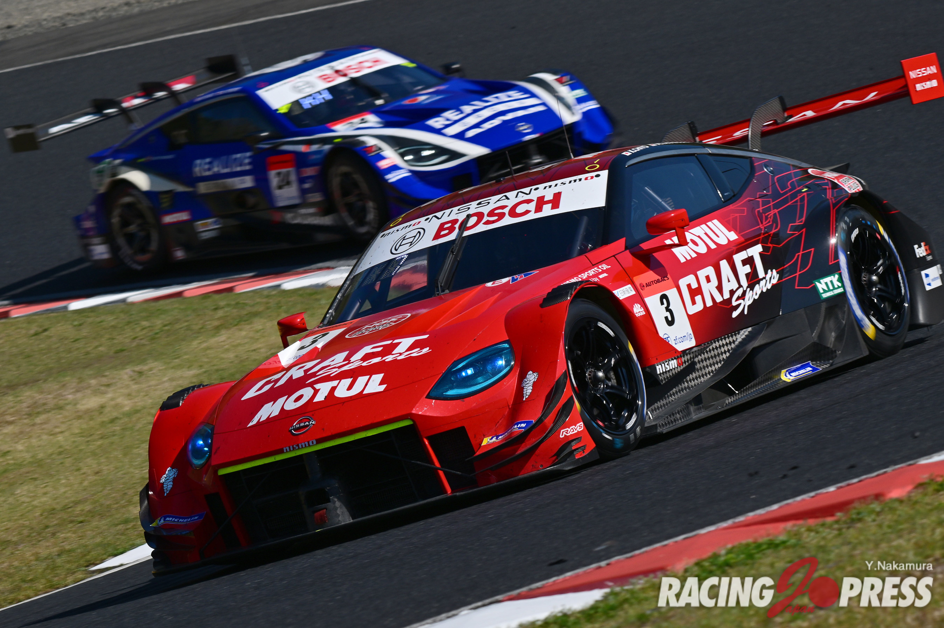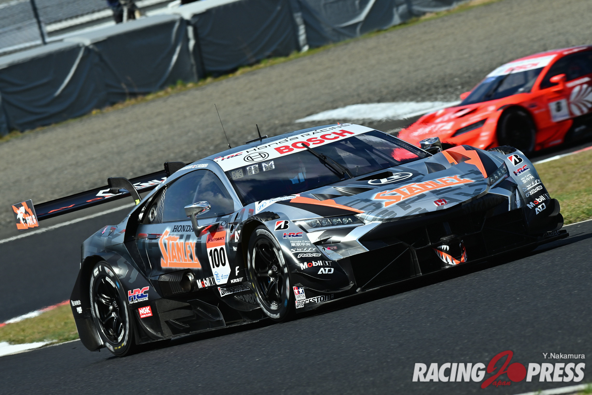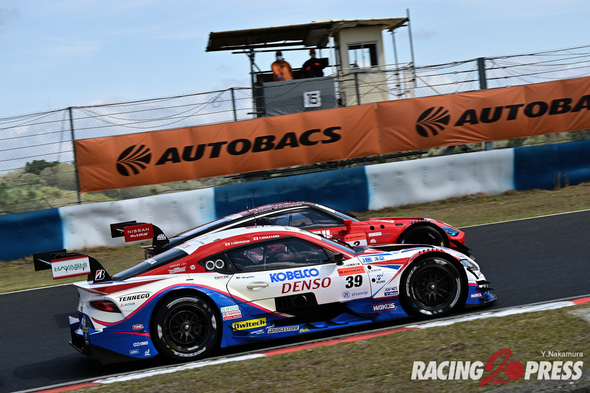 翌日の決勝日も前日に続き、好天気に恵まれる。朝はかなり冷え込んだが次第に気温も上昇。午後2時の決勝直前には気温23度、路面温度は33度というコンディションになった。ポールシッターの14号車がホールショットを奪ってレースを牽引。一方で2位以下はあちこちで激しいポジション争いを繰り広げた。その中で、序盤にひとつ順位を落としていた100号車がアンダーカット狙いでピットイン。これに続くように、翌周以降もルーティンのピット作業を行うチームが現れた。全15台が作業を終えると、難なく14号車がトップに返り咲き。実のところ、ピット作業ではライバル達より5秒ほど時間を要したが、事前に築き上げたマージンによって何事もなかったかのように、周回を重ねていった。その後、レースは2度にわたりフルコースイエロー(FCY)が導入され、一時的に各車のギャップが縮まることもあったが、14号車は理想的なレース運びを続け、そのままチェッカー。幸先良い結果を得ることになった。これに続いたのは100号車。終盤に、#12 カルソニックIMPUL Z(平峰一貴/ベルトラン・バゲット組)と#38 ZENT CERUMO GR Supra(立川祐路/石浦宏明組)を猛追し、鮮やかな逆転劇を披露することで、2位をもぎ取った。3位は決勝でタイヤパフォーマンスが光り、予選9番手から大きくポジションアップした#23 MOTUL AUTECH Z(松田次生/ロニー・クインタレッリ組)。今シーズンの開幕戦は、3メーカーが表彰台を分け合う形で終えている。