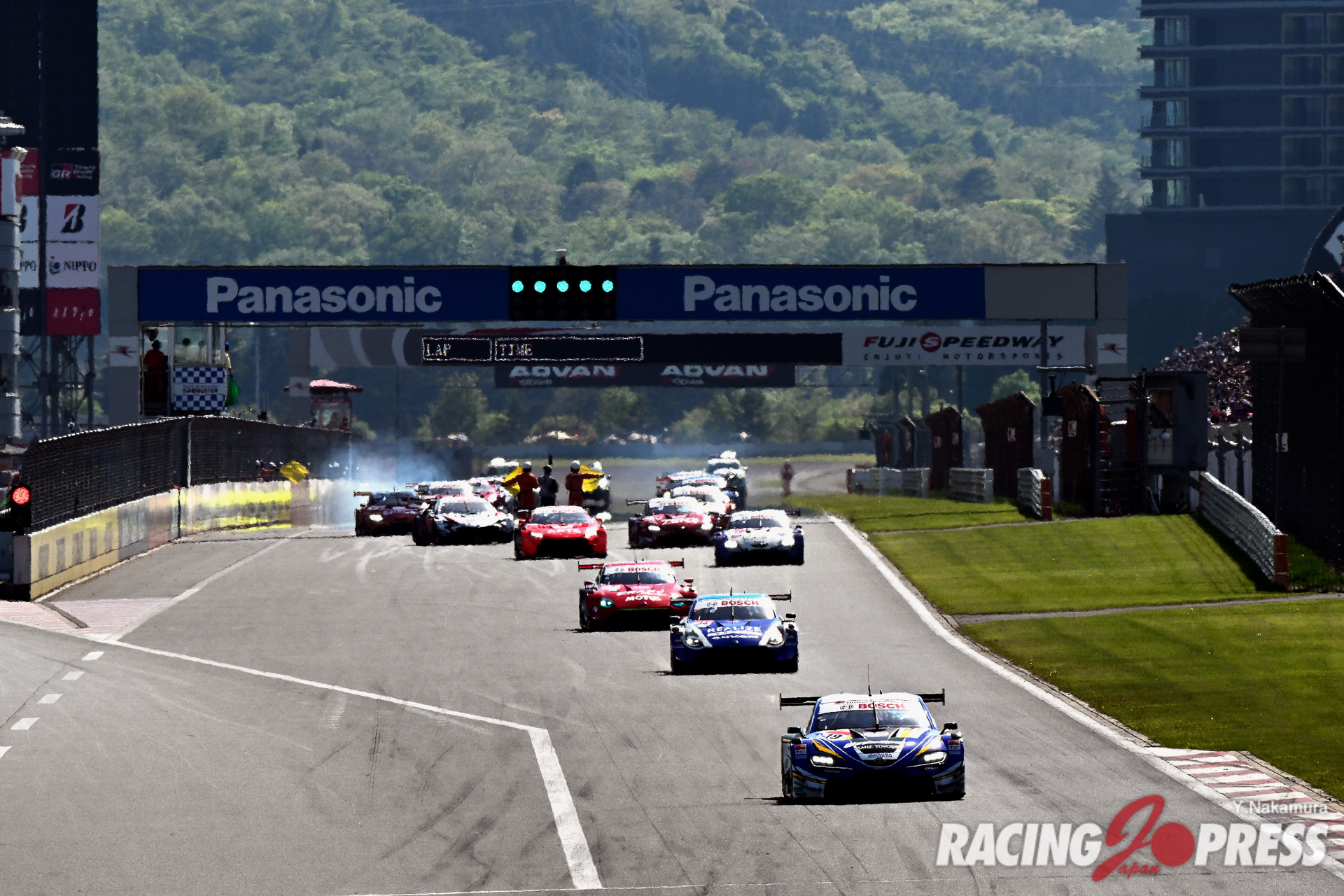5月3、4日のゴールデンウィーク中、SUPER GT第2戦富士大会が開催された。450km、100周という長丁場のレースは折り返しを前に、アクシデントが発生。これを境にアクシデントが続発。後半においては長い時間レースが中断され、最後はセーフティカーランによりチェッカーが振られることになった。