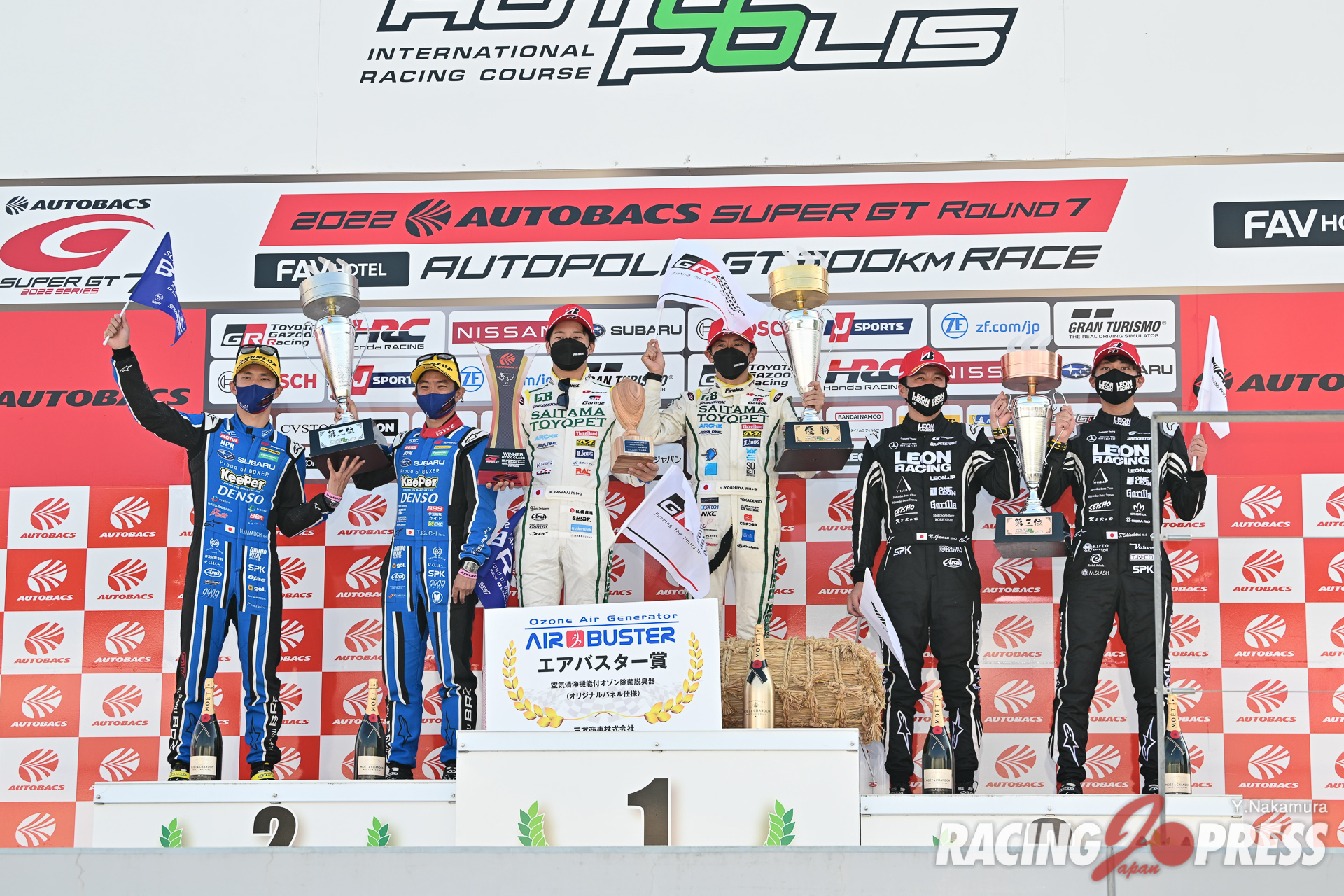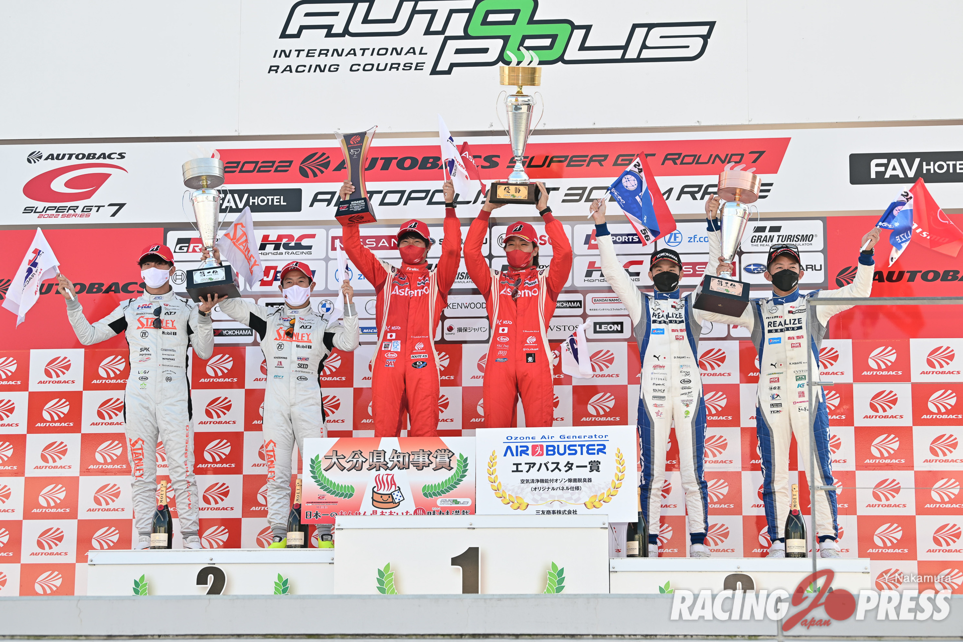 10月2日(日)、大分県のオートポリスで「2022 AUTOBACS SUPER GT Round7 FAV HOTEL AUTOPOLIS GT 300km RACE」の決勝が行われ、GT500クラスは#17 Astemo NSX-GT(塚越 広大/松下 信治)が、土曜日の公式練習でクラッシュしたマシンを修復し、見事に今季初優勝を飾った。2位に#100 STANLEY NSX-GT(山本 尚貴/牧野 任祐)。ポールポジションからスタートした#24 リアライズコーポレーション ADVAN Z(佐々木 大樹/平手 晃平)は3位となった。