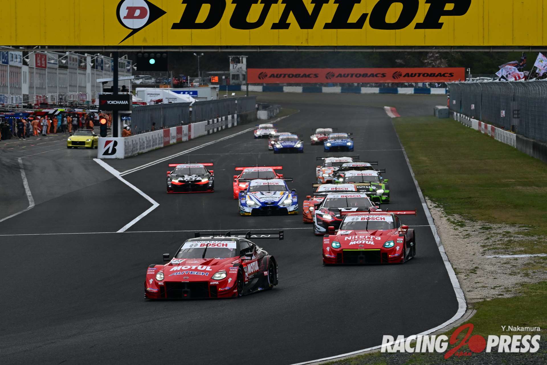 雷雨によって翻弄されたレースを制したのは、ポールポジションからスタートした#23 MOTUL AUTECH Z(松田 次生/ロニー・クインタレッリ)。2位には#3 Niterra MOTUL Z(千代 勝正/高星 明誠)が入り、日産Zのワンツーフィニッシュとなった。3位には#8 ARTA MUGEN NSX-GT(野尻 智紀/大湯 都史樹)が続いた。
