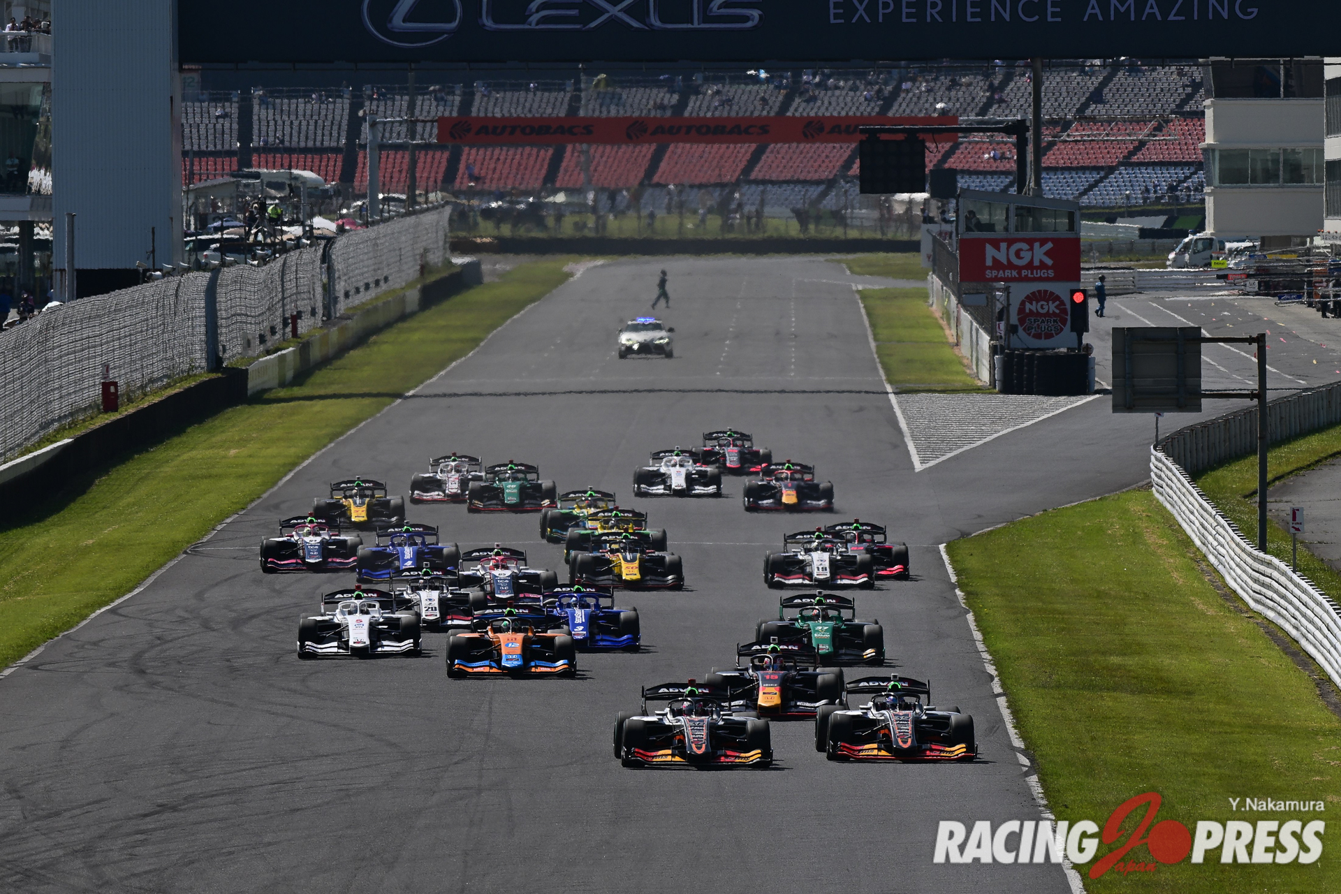5月21日(日)、大分県のオートポリスで「2023年全日本スーパーフォーミュラ選手権 第4戦」の決勝が行われ、2番グリッドからスタートした#15 リアム・ローソン [TEAM MUGEN]が逆転で2勝目を飾った。2位に#37 宮田 莉朋 [VANTELIN TEAM TOM’S]、ポールポジションからスタートした#38 坪井 翔 [P.MU/CERUMO・INGING]は3位となった。
