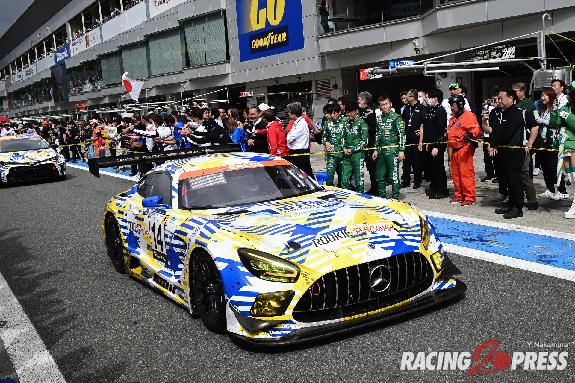 5月27日(土)~28日(日)、富士スピードウェイで「ENEOS スーパー耐久シリーズ2023 第2戦 NAPAC 富士SUPER TEC 24時間レース」の決勝が行われ、ST-Xクラスは#14 中升 ROOKIE AMG GT3(鵜飼 龍太/蒲生 尚弥/平良 響/片岡 龍也)が初優勝を飾った。