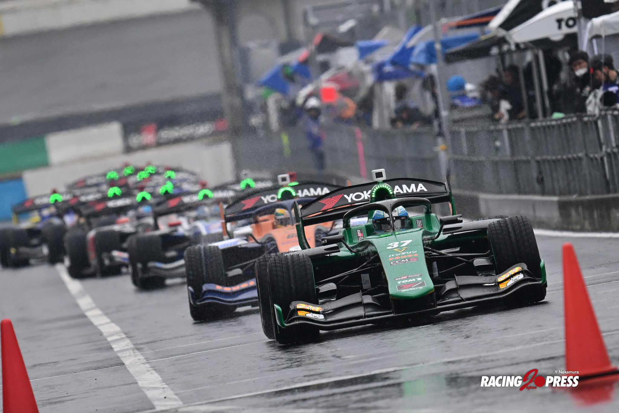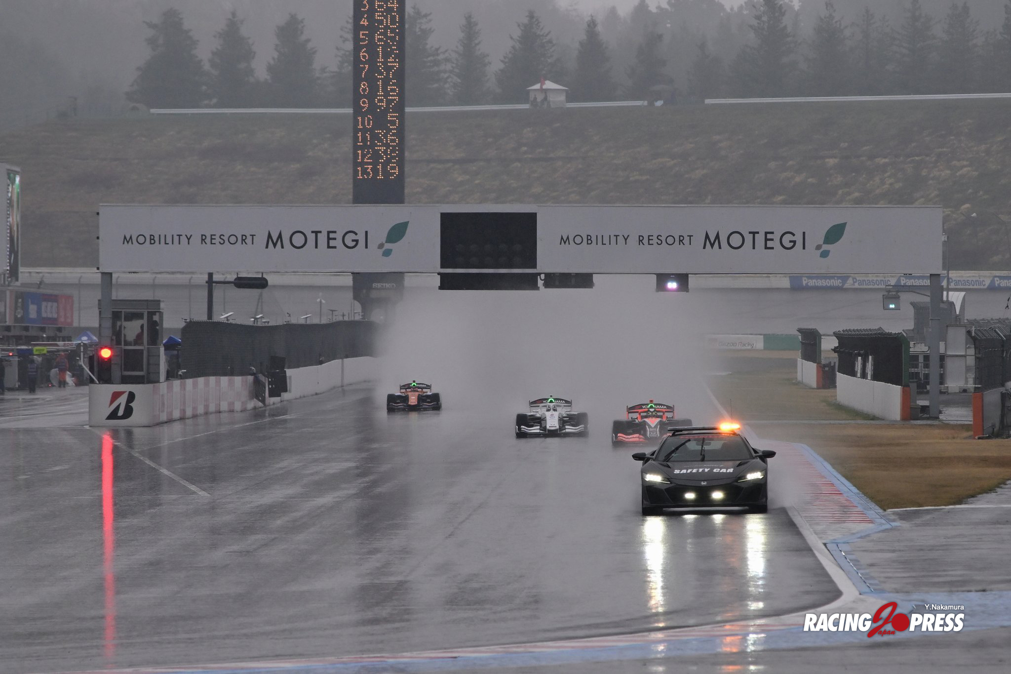 予選から4時間半後に迎えた決勝。だが、その戦いを前にして無情の雨が降り始めた。スタートを迎える午後2時45分には本降りの状態となり、シーズン初戦はセーフティカー(SC)ランによる幕開けになった。