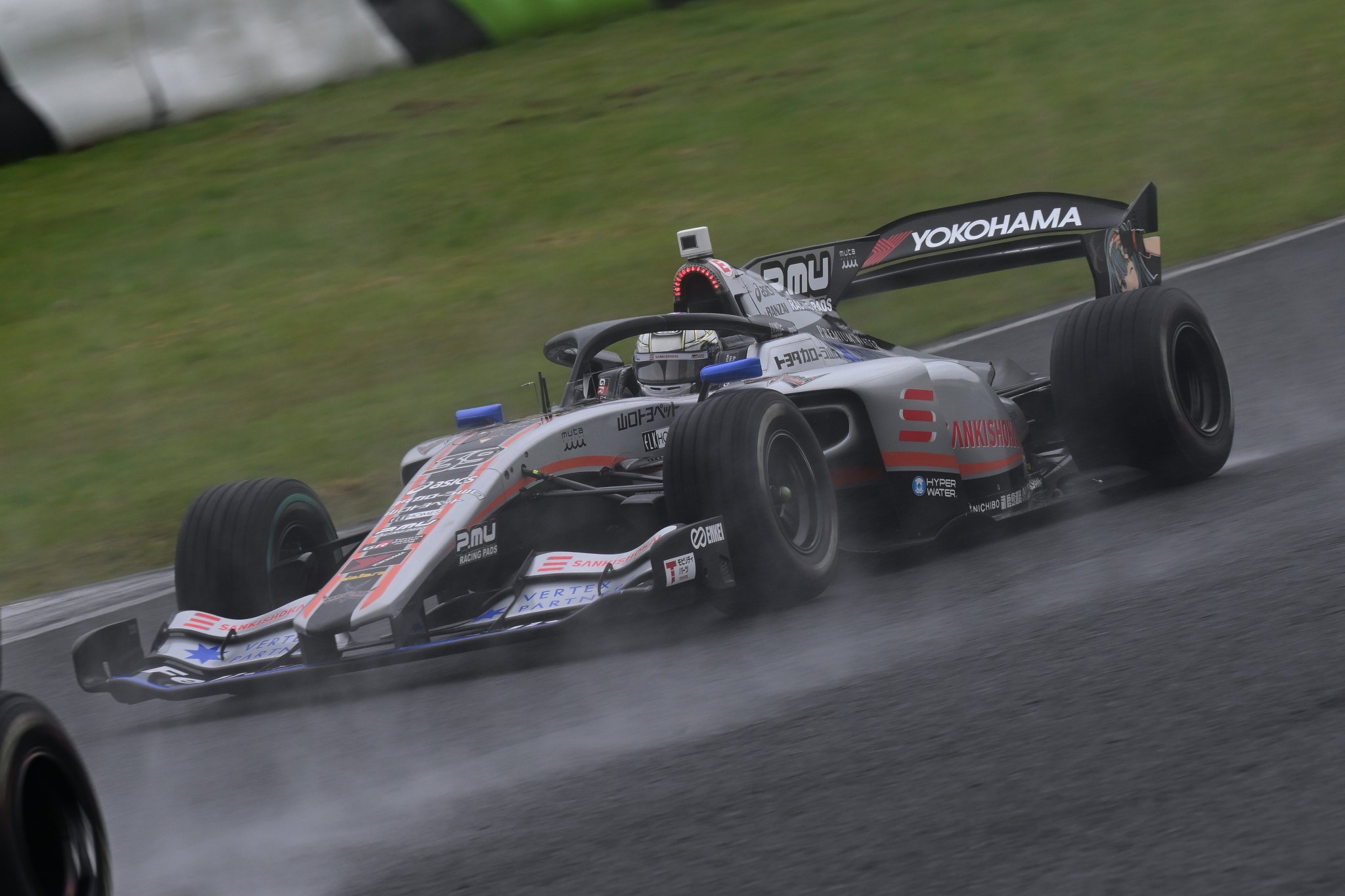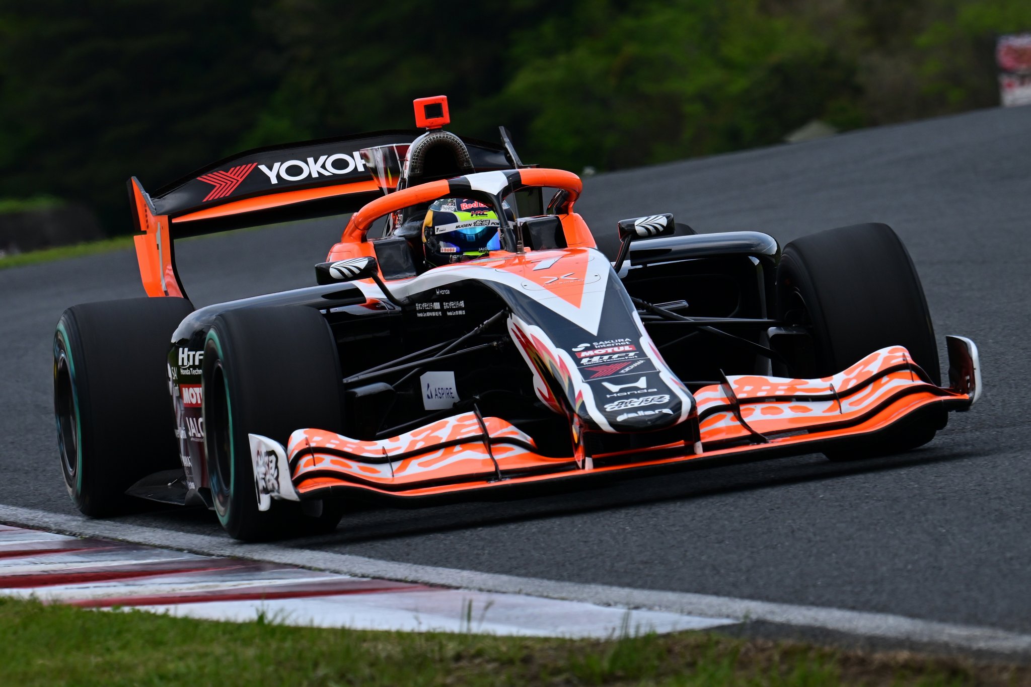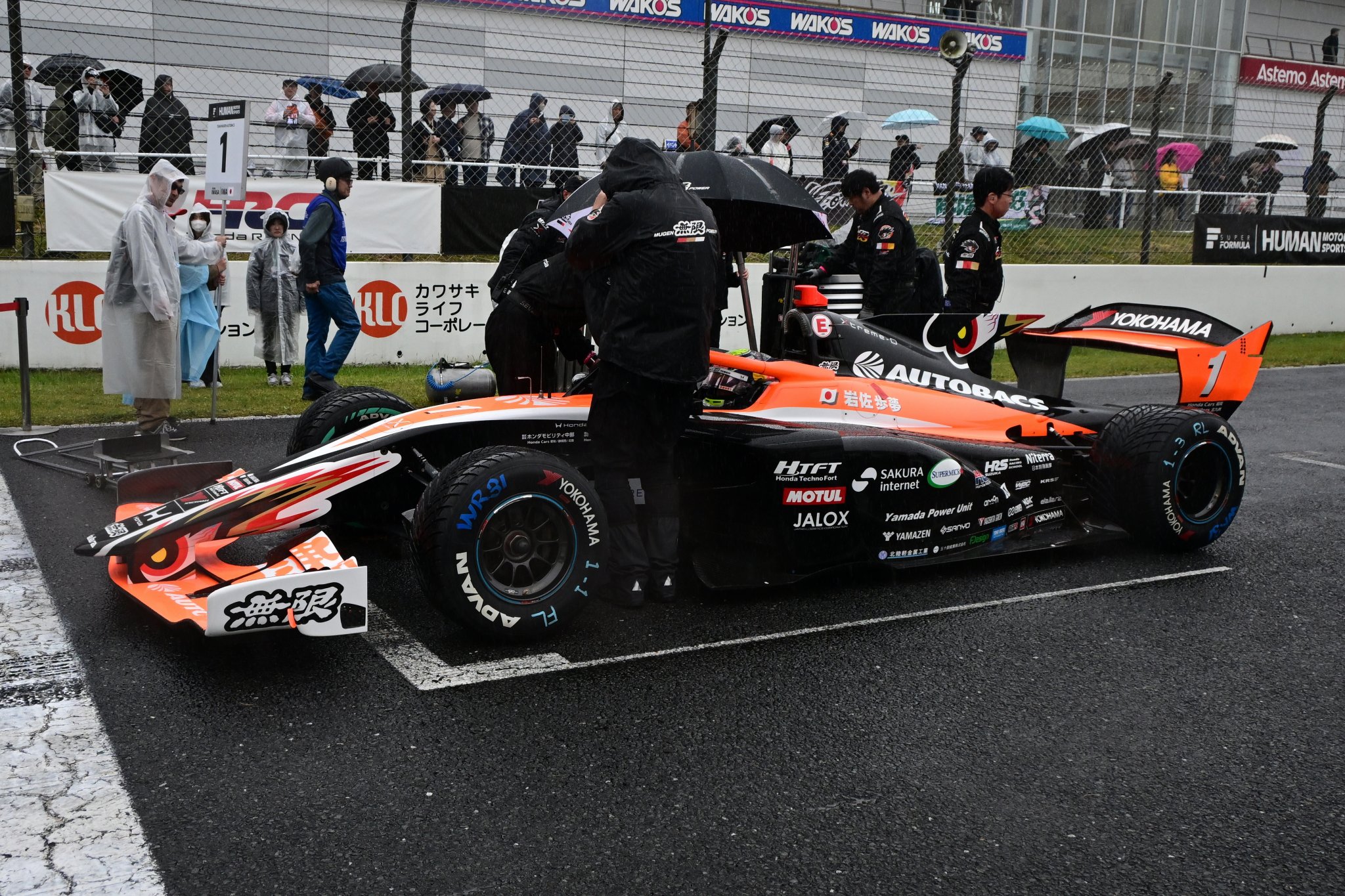 4月25、26日に大分・オートポリスで開催された全日本スーパーフォーミュラ選手権第3戦。決勝日は朝から断続的に雨が降る不安定な天候となった。予選1位のNo.1 岩佐歩夢(TEAM MUGEN AUTOBACS)らがセーフティカー先導でスタートを切ったが、すぐに赤旗が提示されて中断。その後再開叶わず、残念ながら中止となっている。