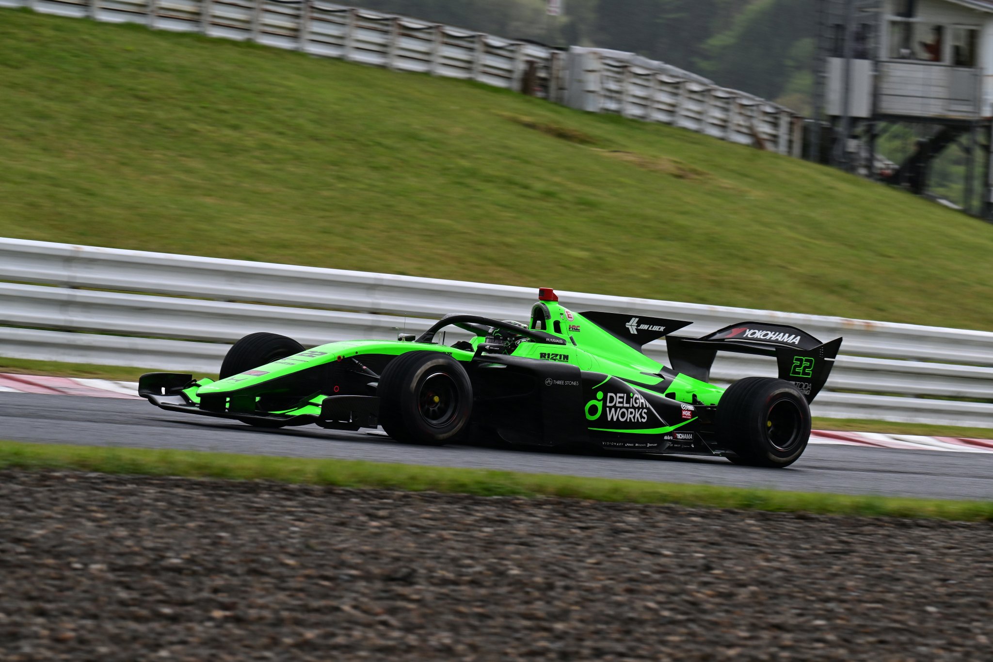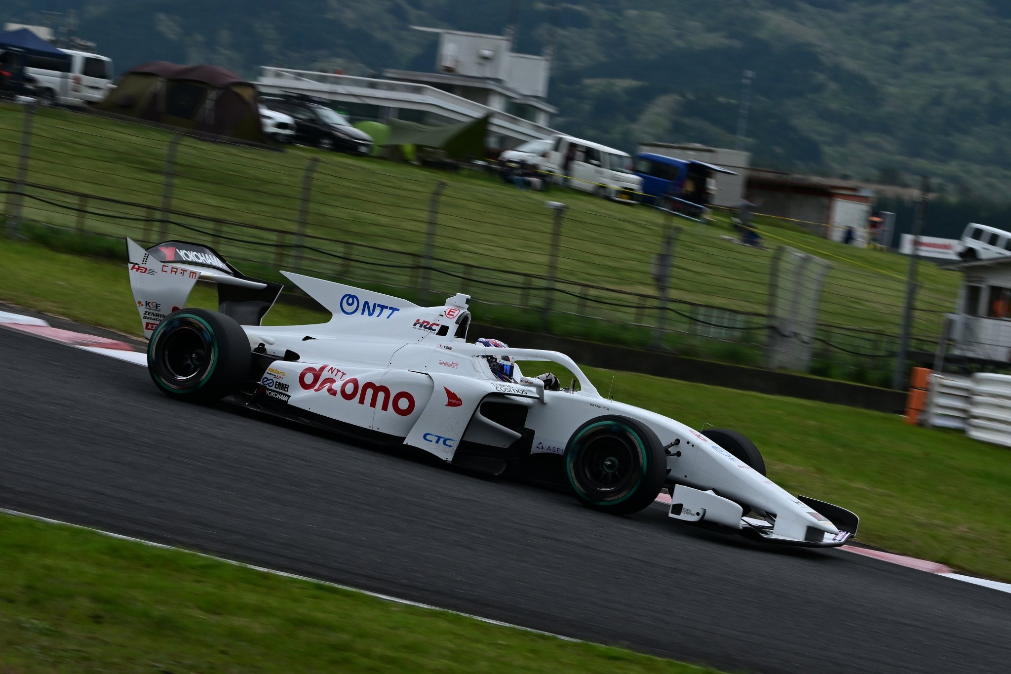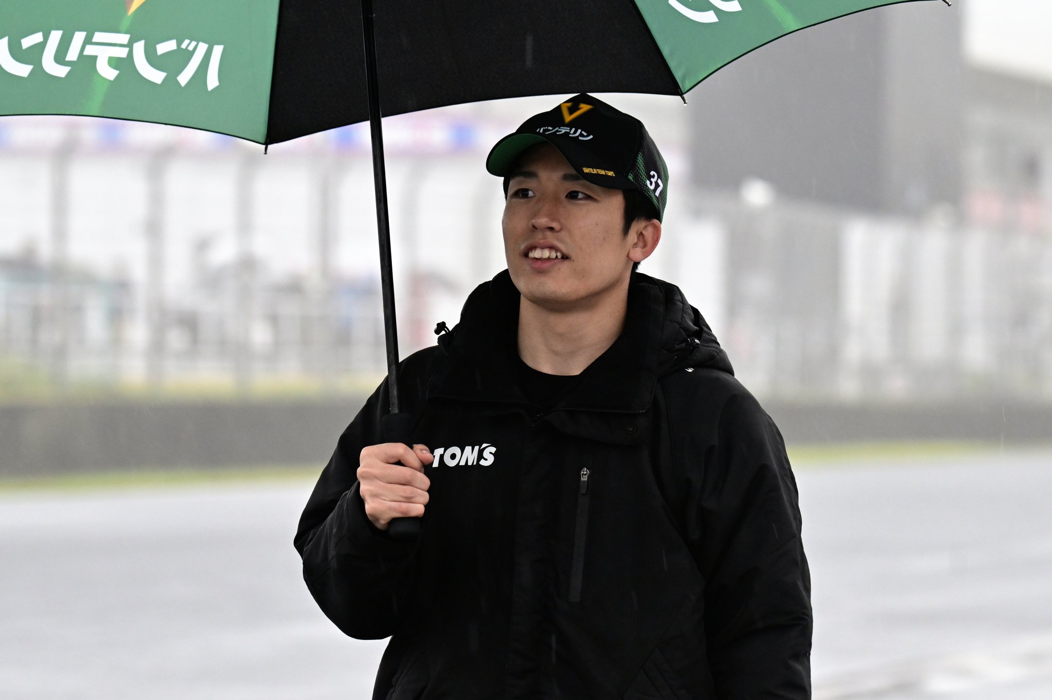 4月25、26日に大分・オートポリスで開催された全日本スーパーフォーミュラ選手権第3戦。決勝日は朝から断続的に雨が降る不安定な天候となった。予選1位のNo.1 岩佐歩夢(TEAM MUGEN AUTOBACS)らがセーフティカー先導でスタートを切ったが、すぐに赤旗が提示されて中断。その後再開叶わず、残念ながら中止となっている。