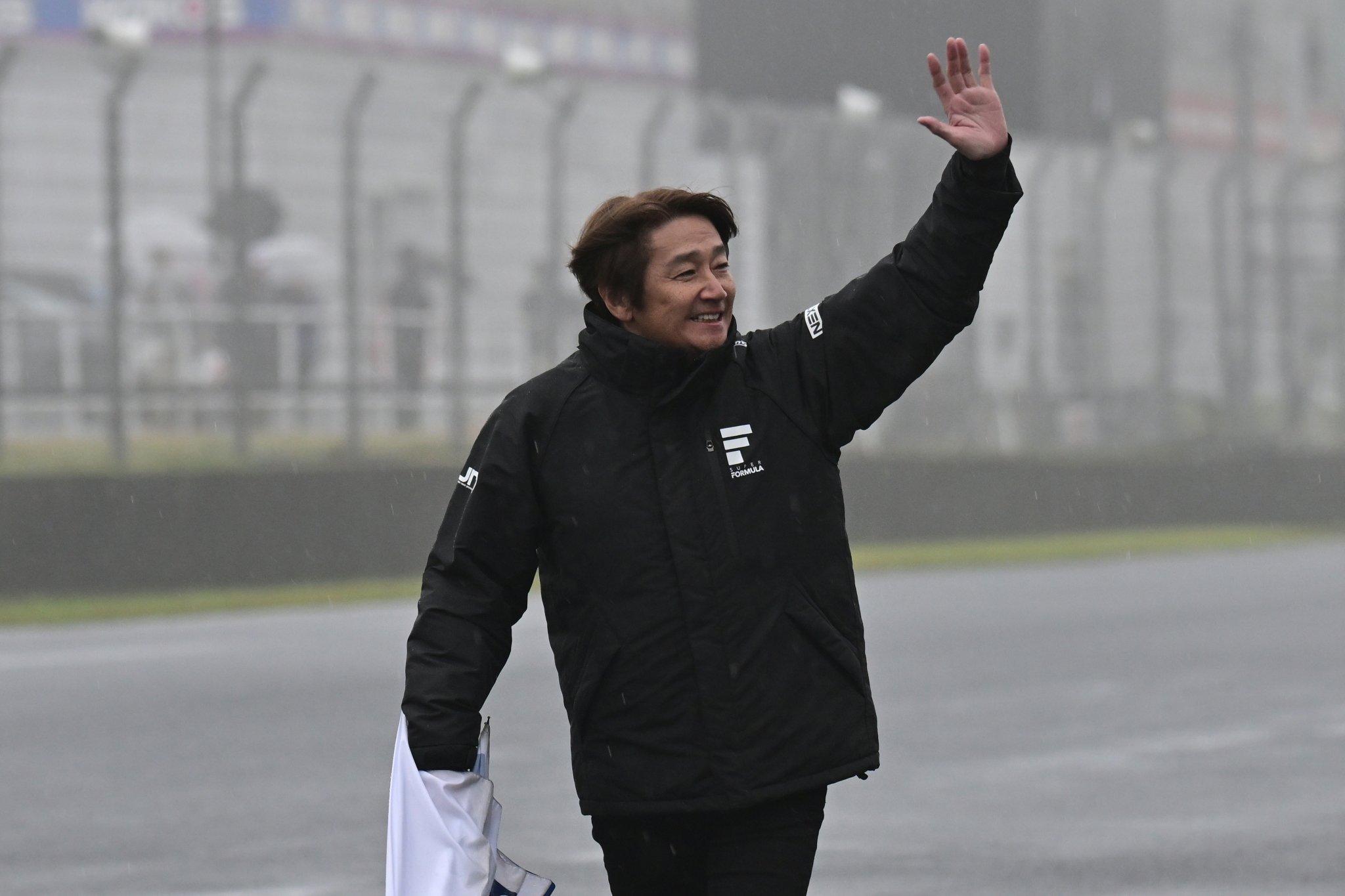 - 中止発表後、観客に手を振る近藤真彦JRP会長