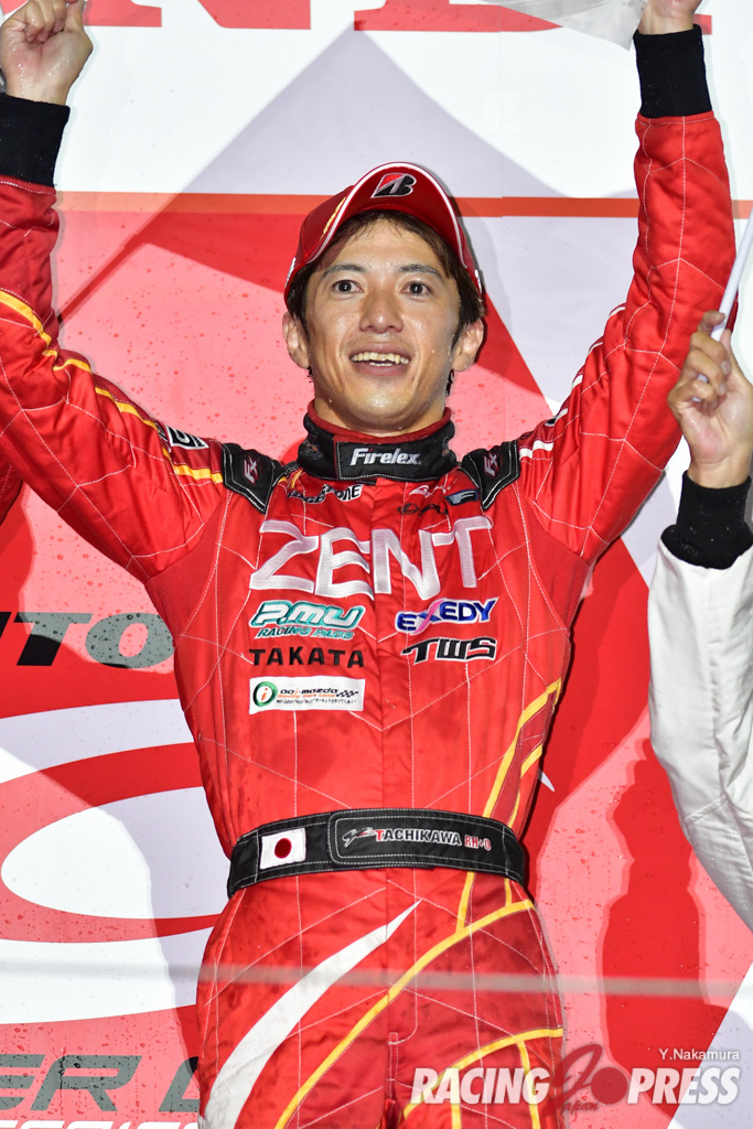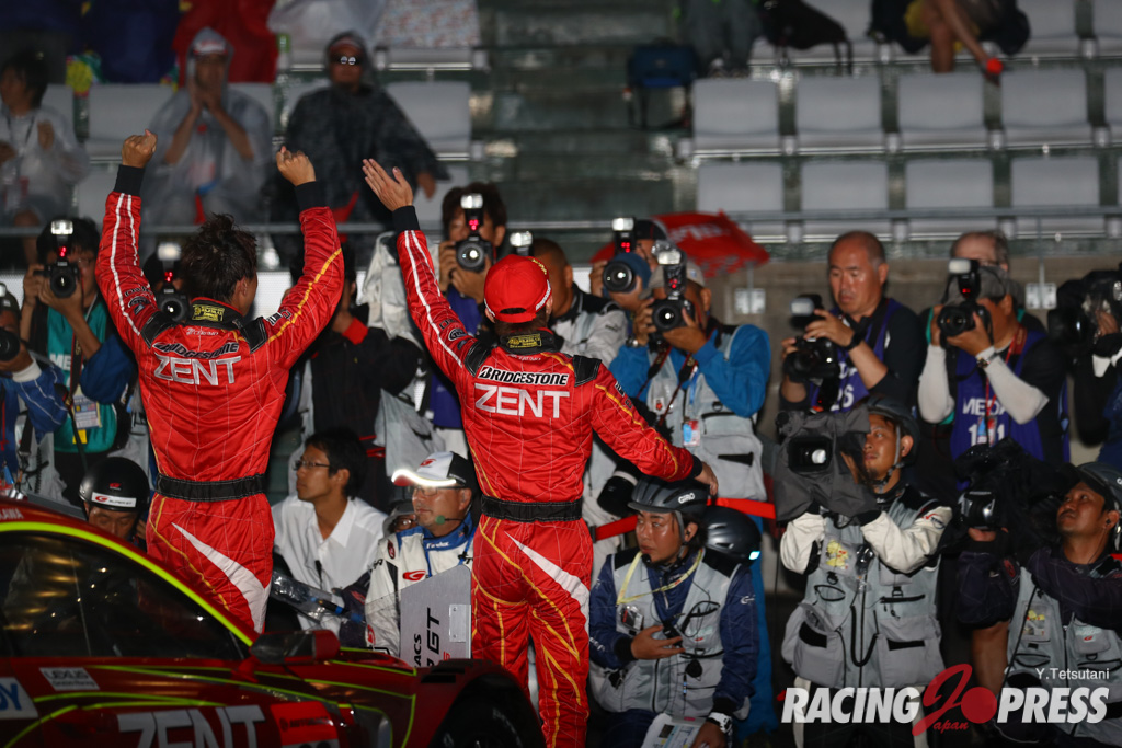 シリーズ最長の1000kmレースを迎えた鈴鹿。決勝は、突然降り出す雨、しかしそれは長続きせず、スリックタイヤでのマシンコントロールをいっそう難しいものにし、ドライバーのスキルの高さを問うものとなった。そんな中でも冷静なレース運びを見せていたのがNo.38 ZENT CERUMO RC Fの立川祐路だった。現在、SUPER GTにおいて21回にわたるポールポジションを獲得、通算最多を誇る。安定した速さ、勝負強さを武器に、終始不安定な天候だった決勝でも、着実にポジションアップを成功させ、また、ベテランドライバー同士のしびれるようなサイド・バイ・サイドの攻防戦を披露、レースファンを魅了した。レース終盤には、過酷なトップ争いを展開。抜きつ抜かれつのバトルに、一時は黄旗追い越しの検証がなされたが、際どい走りを“おとがめなし”というセーフの判定にする運の強さも見せた。これまでSUPER FORMULAのチャンピオン、石浦宏明とのコンビは2年目に入るも、未勝利で終わっていたのだが、今回の逆転勝利が今後の飛躍を後押ししそうだ。