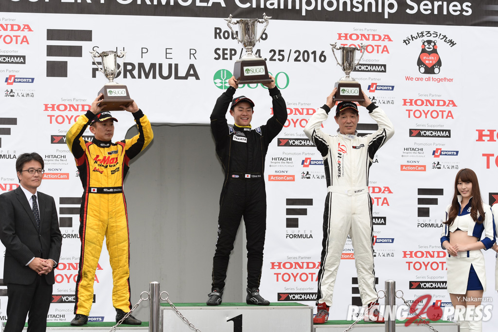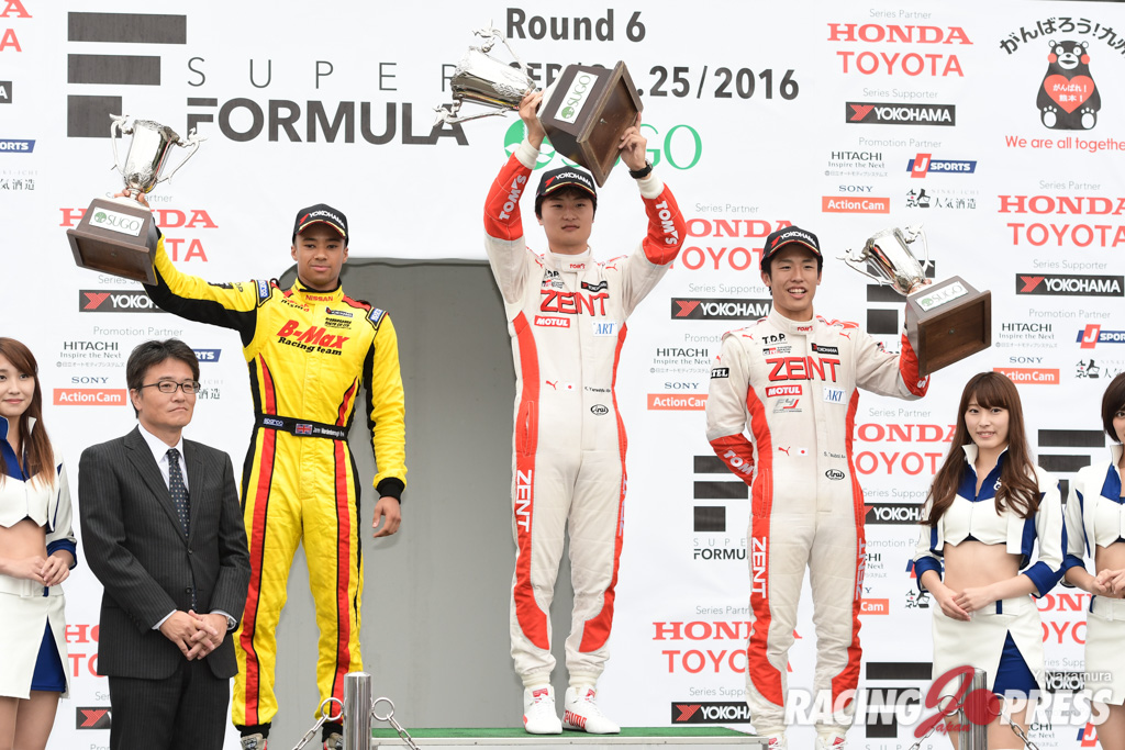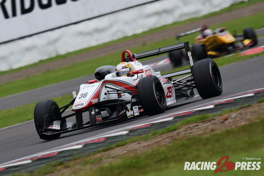 スポーツランドSUGOで行なわれた全日本F3 第15戦。ポールポジションからスタートした#36 山下健太 [ZENT TOM’S F312]が優勝。2位には#22 ヤン・マーデンボロー [B-MAX NDDP F3]、3位には最終ラップで #12 牧野任祐 [TODA FIGHTEX]をオーバーテイクした#37 坪井 翔 [ZENT TOM’S F314]が入った。