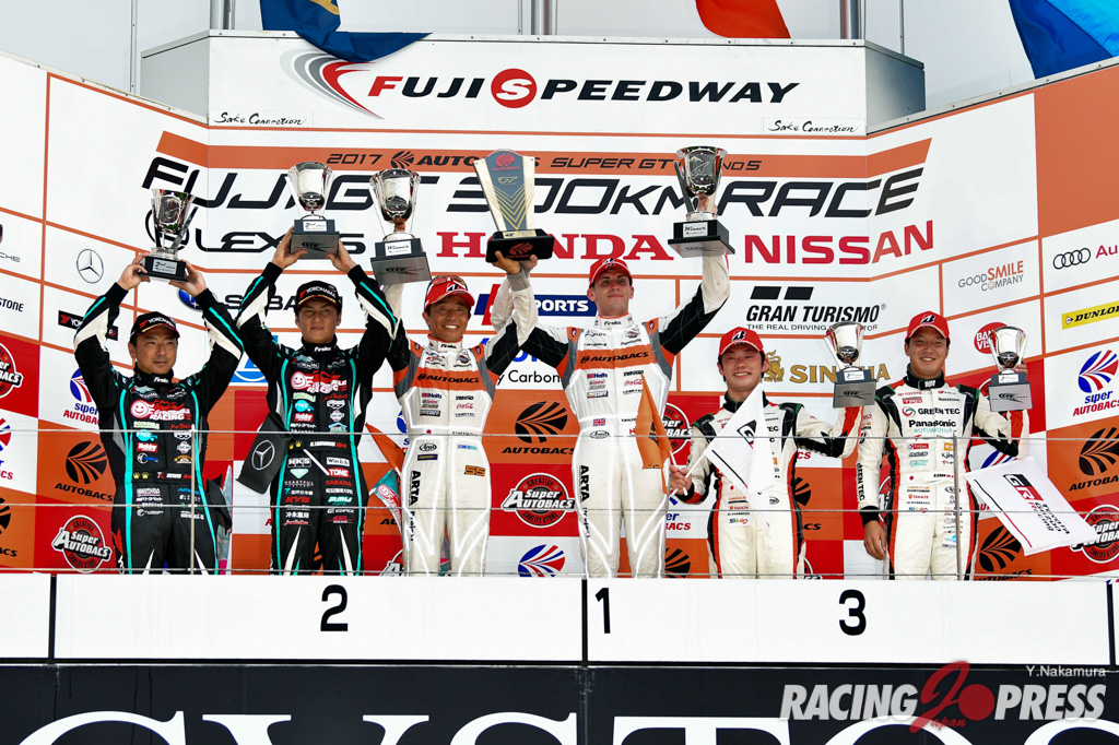 8月6日(日)、富士スピードウェイでSUPER GT 第5戦の決勝が行われ、GT500・300クラスともにAUTOBACS RACING TEAM AGURIがダブルでポール・トゥ・ウィンという快挙を成し遂げた。