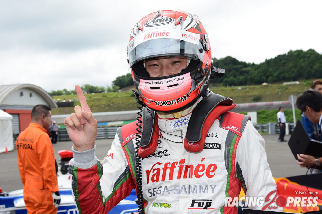 8月20日(日)、ツインリンクもてぎで、スーパーフォーミュラ第4戦のノックダウン予選のうち、昨日の豪雨により順延されていたQ2とQ3が行なわれ、大学生ルーキーの#4 山下 健太 [FUJI×raffinee KONDO SF14]が、今回から投入されたソフトタイヤを見事に乗りこなし、4戦目にして初のポールポジションを獲得。