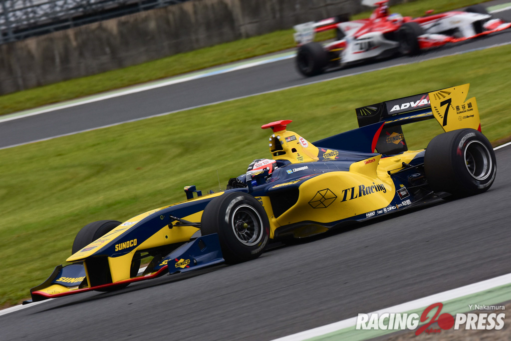 ポールポジションの#4 山下 健太 [FUJI×raffinee KONDO SF14]がスタートで出遅れ、ホールショットを奪った#18 小林 可夢偉 [KCMG Elyse SF14] はソフトタイヤで34周まで引っ張りマージンを築いたが、タイヤ交換に手間取っている間に#15 ピエール・ガスリー [TEAM MUGEN SF14] に逆転を許してしまう。ミディアムタイヤに替えた小林は、ソフトタイヤのガスリーとの差を詰めることができず、そのまま逃げ切られて2位に。3位にはスウェーデン人ドライバーの#7 フェリックス・ローゼンクヴィスト [SUNOCO TEAM LEMANS SF14] が入り、2戦連続での表彰台となった。
